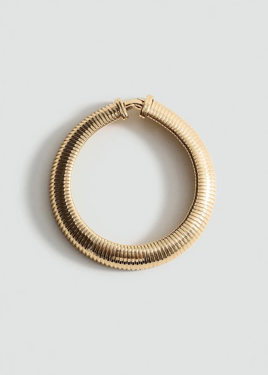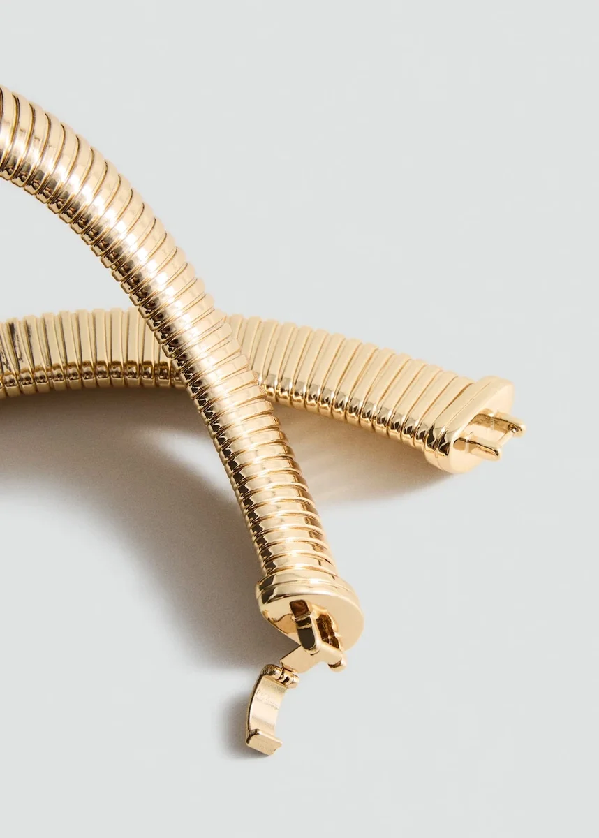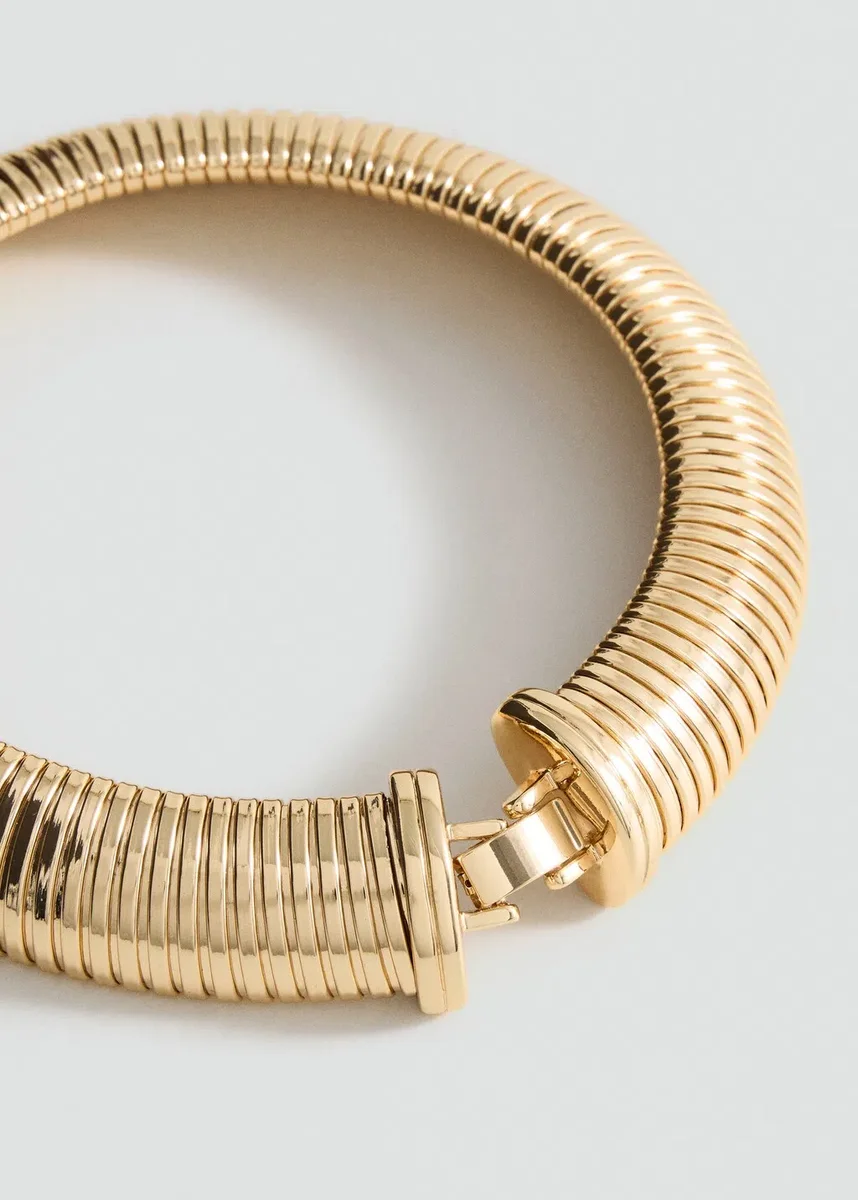 Metaliczny wzór. Styl choker. Metalowe zapięcie na zatrzask.