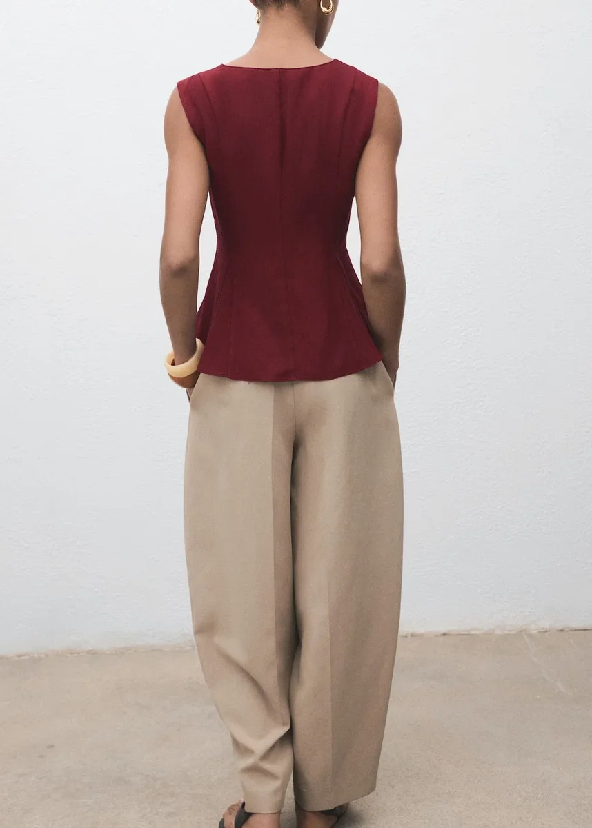 Wykonana z mieszanki lyocellu, ta bluzka ma krój z falbaną, dekolt w szpic i szerokie ramiączka. Posiada boczny zamek błyskawiczny i wewnętrzną podszewkę