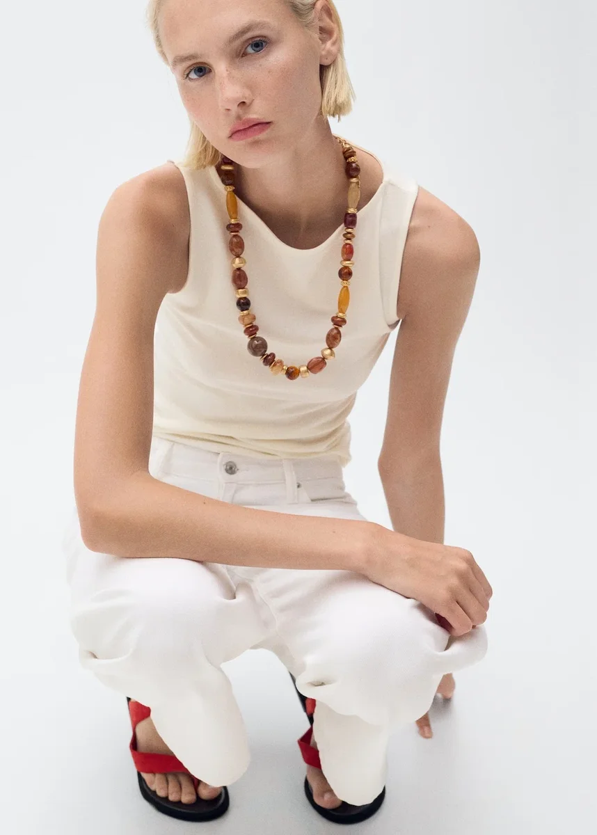 Wykonana z bawełnianej tkaniny, ta dopasowana bluzka ma dekolt w łódkę i szerokie ramiączka, które zapewniają wygodę
