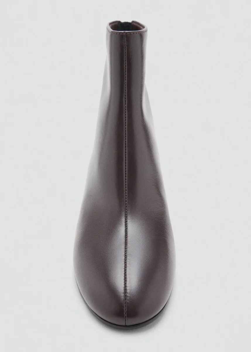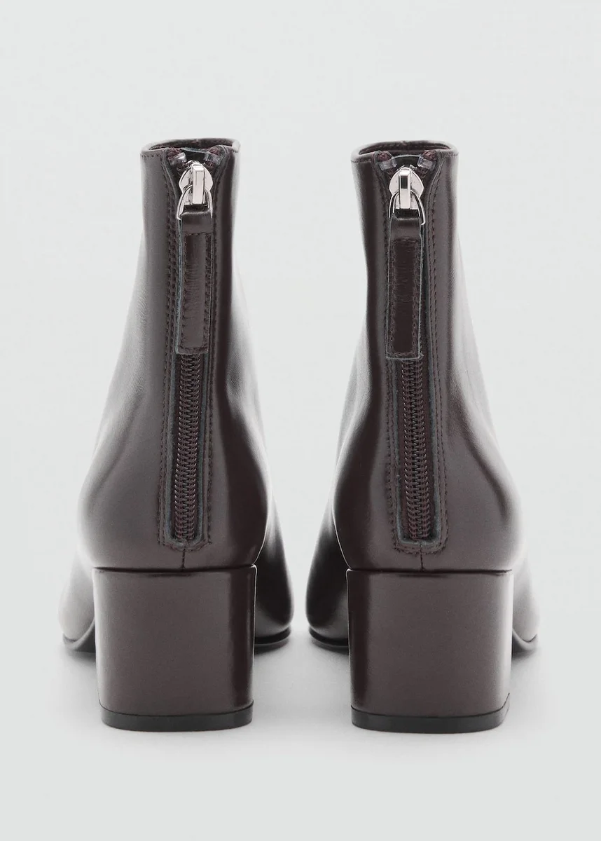 Skóra bydlęca. Okrągły nosek. Obcas blokowy. Zamek błyskawiczny z tyłu. Wewnętrzna wyściółka. Wysokość obcasa: 5,5 cm