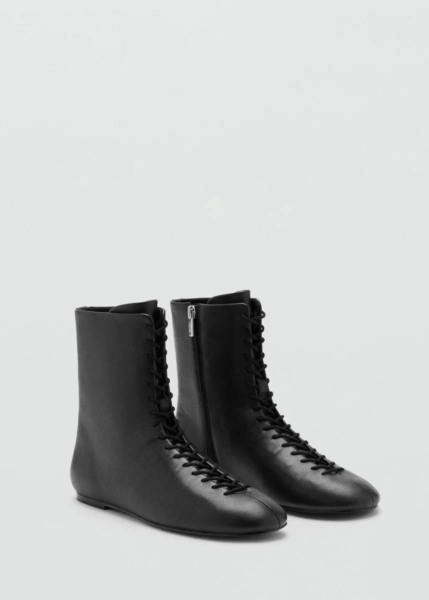 100% skóra bydlęca. Płaskie. Okrągły nosek. Sznurowane i zapinane na zamek błyskawiczny. Wewnętrzna wyściółka. Wyłącznie w sprzedaży internetowej.