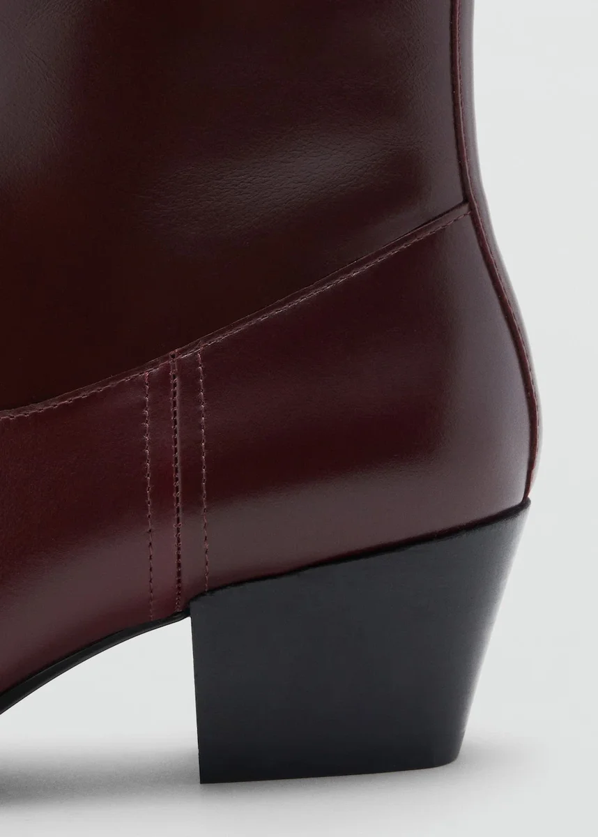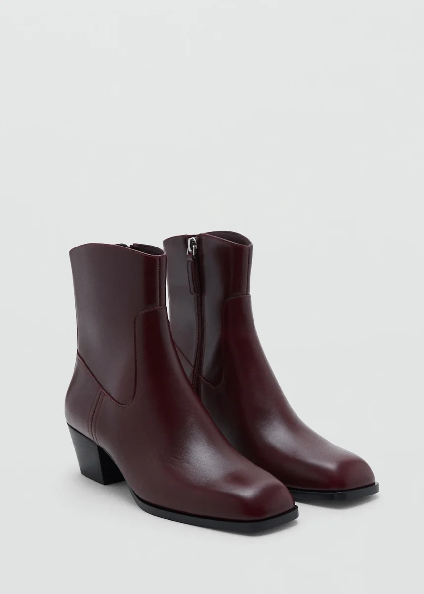 Skóra bydlęca. Kwadratowy nosek. Prostokątny obcas. Boczne zapięcie na zamek błyskawiczny. Wyłącznie w sprzedaży internetowej.