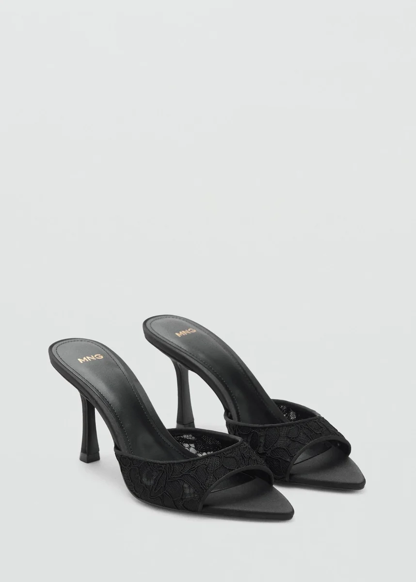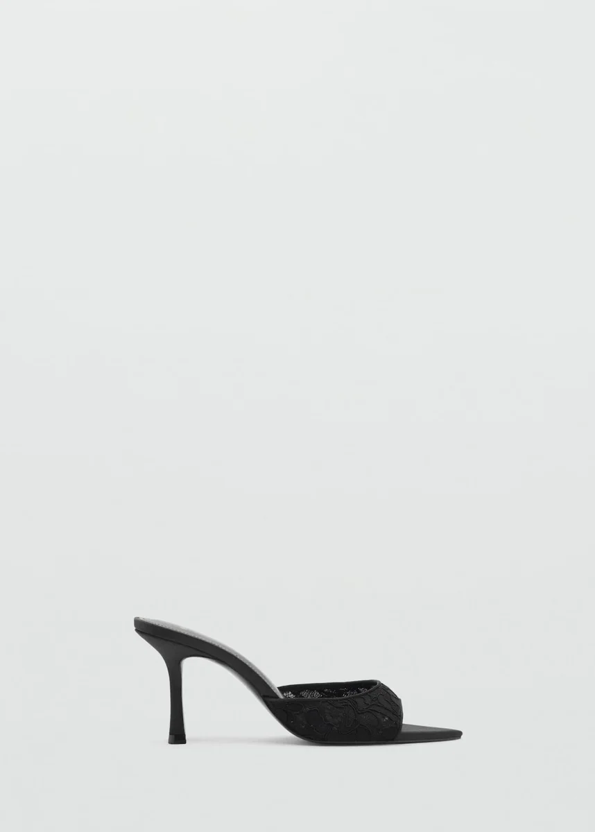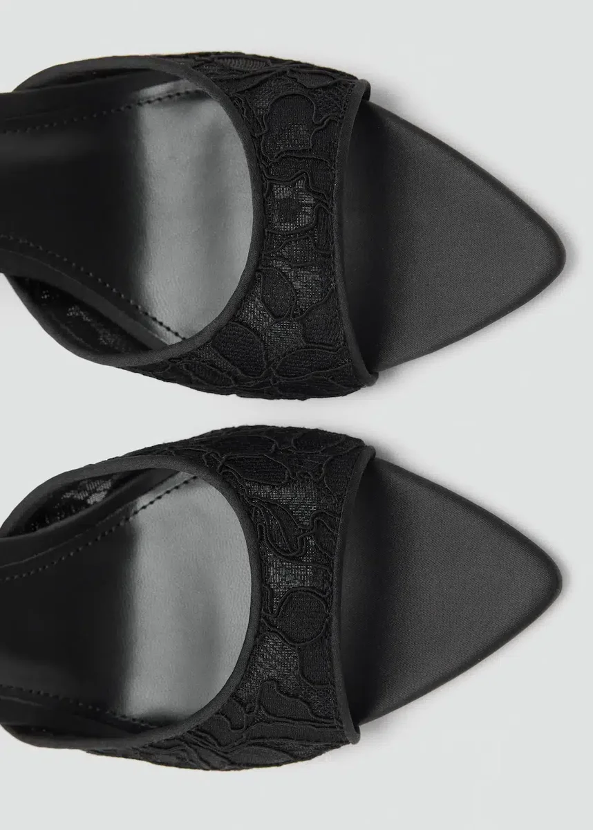 Model z paskiem z tyłu. Pasek. Koronkowa wstawka. Otwarty palec. Szpilka. Bez zapięcia. Obcas 3,15 cala.