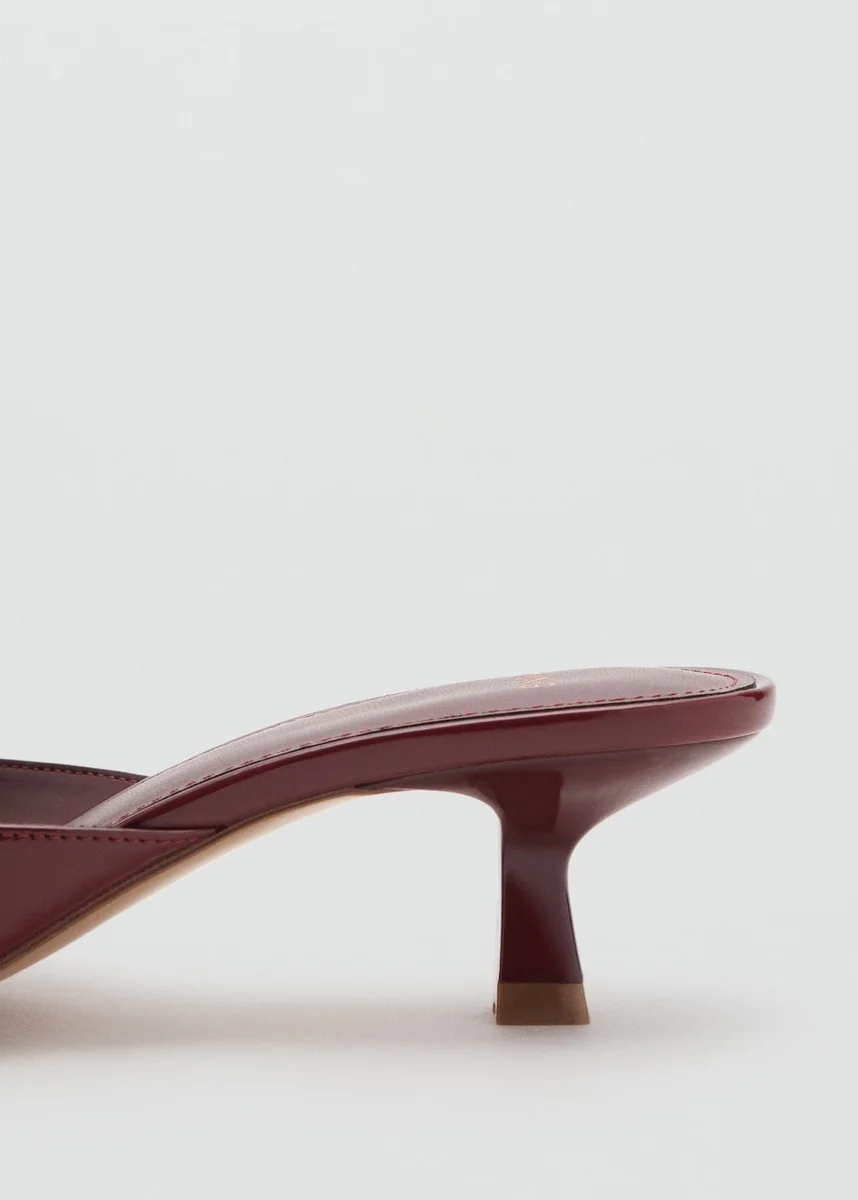 Konstrukcja typu slingback. Otwór z przodu. Obcas typu kitten. Bez zapięcia. Obcas 1,77 cala. Wewnętrzna wyściółka