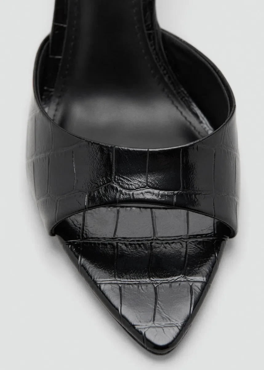 Efekt krokodyla. Tył z paskiem. Czubek spiczasty. Szpilka. Bez zapięcia. Obcas 3,15 cala