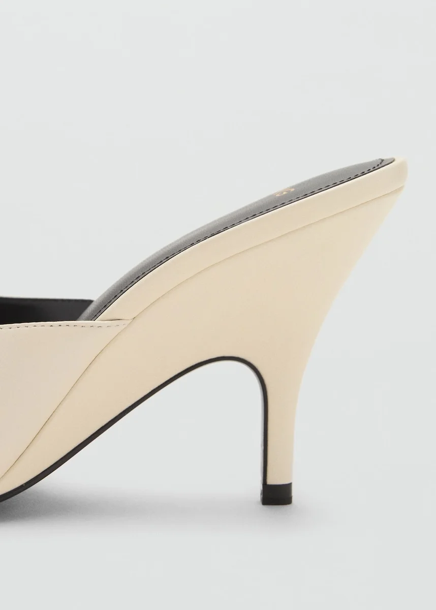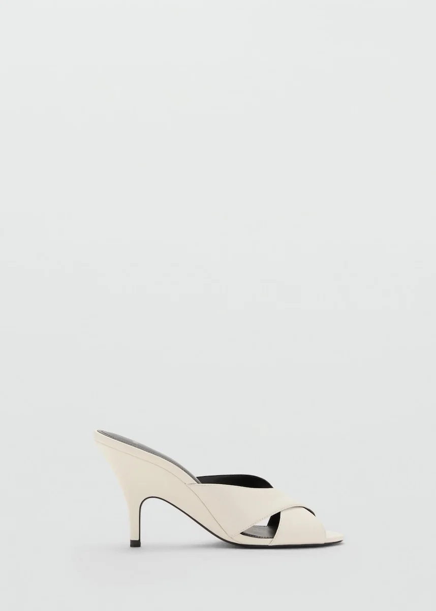 100% skóra owcza. Krzyżujące się paski. Otwarty nosek. Obcas w kształcie lejka. Wysokość obcasa: 10 cm.
