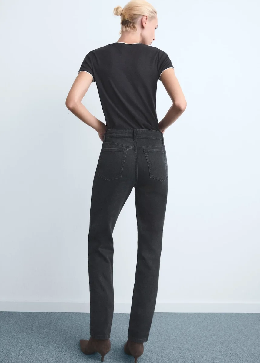 Bawełniana tkanina dżinsowa. Standardowa długość. Wąski krój. Wysoki stan. Szlufki. Pięć kieszeni. Zapięcie na guzik i zamek błyskawiczny. Dostępne w rozmiarach Plus. Wygodny materiał z elastycznością