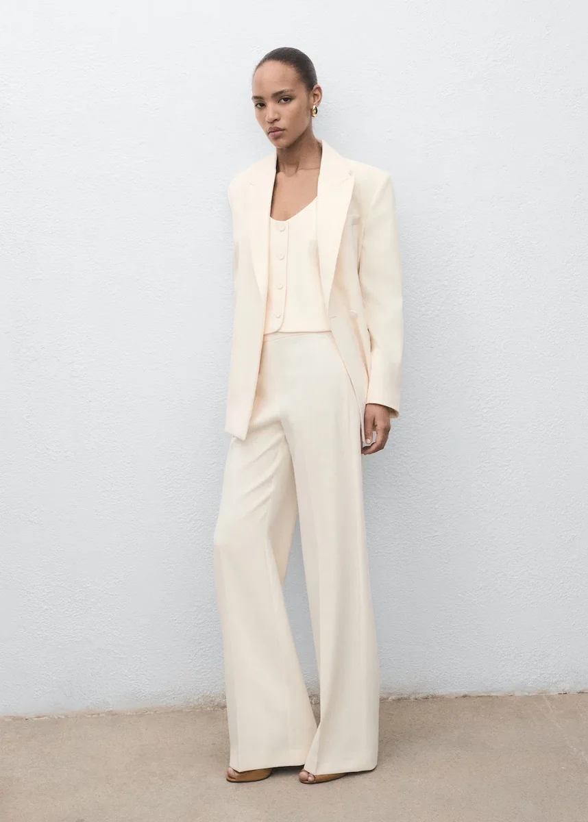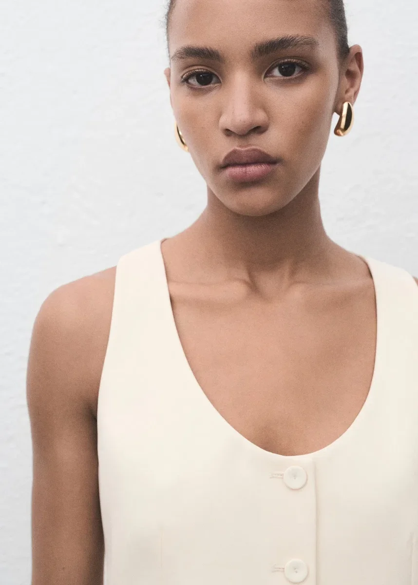 Krój garniturowy. Prosty krój. Otwarty okrągły dekolt. Bez rękawów. Szerokie ramiączka. Zapięcie na guziki z przodu. Podszewka wewnętrzna. Dostępne w rozmiarach Plus. Całościowy look.