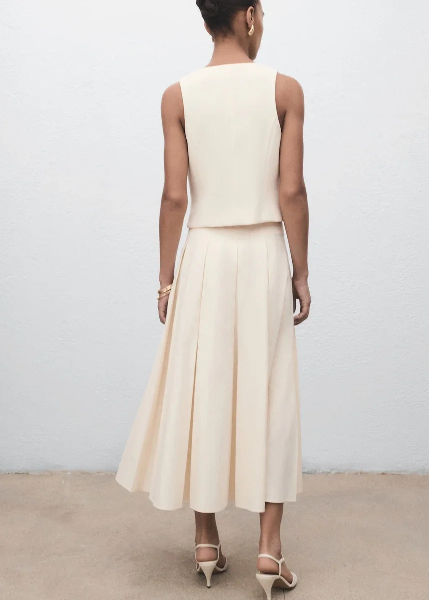 Krój garniturowy. Prosty krój. Otwarty okrągły dekolt. Bez rękawów. Szerokie ramiączka. Zapięcie na guziki z przodu. Podszewka wewnętrzna. Dostępne w rozmiarach Plus. Całkowity wygląd