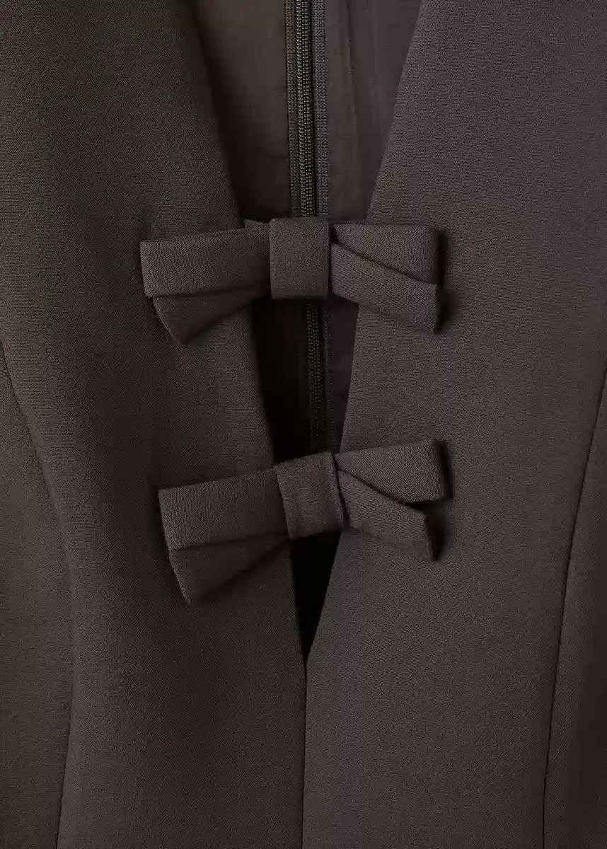Ta dopasowana bluzka ma dekolt w szpic ozdobiony kokardkami. Ma szerokie ramiączka i jest zapinana z tyłu na zamek błyskawiczny. W zestawie znajdują się dopasowane spodnie.