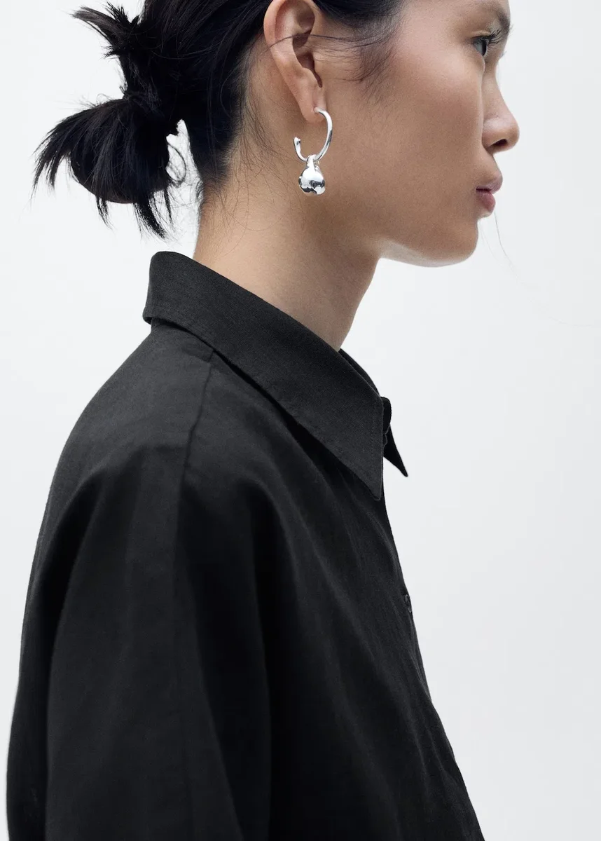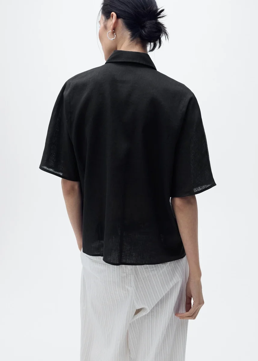 Wykonana z mieszanki bawełny i lnu, ta odzież ma prosty krój z kołnierzykiem koszulowym i krótkimi rękawami. Zapięcie na guziki z przodu dodaje funkcjonalności. Dostępna w rozmiarze Plus