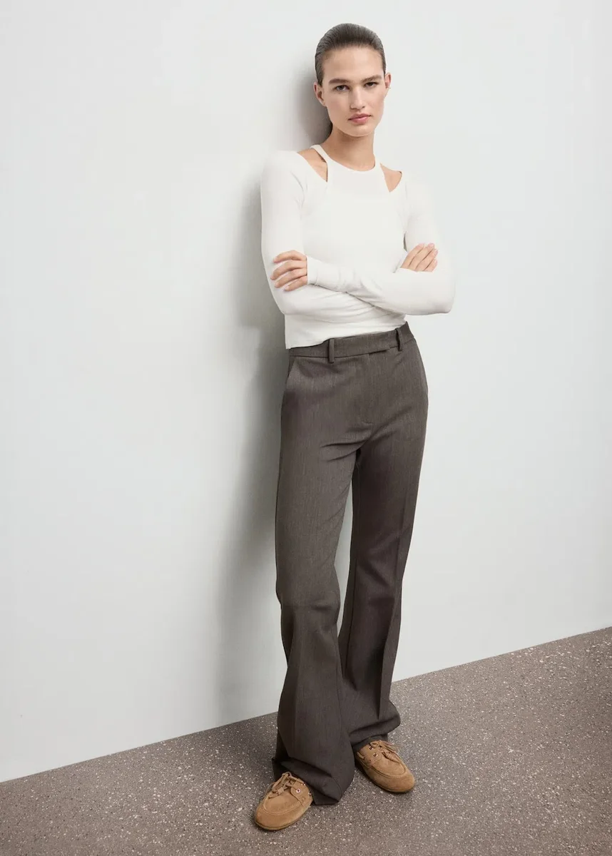 Wykonana z dzianiny prążkowanej, ta część garderoby ma dopasowany i łączony krój. Posiada dekolt typu halter i długie rękawy