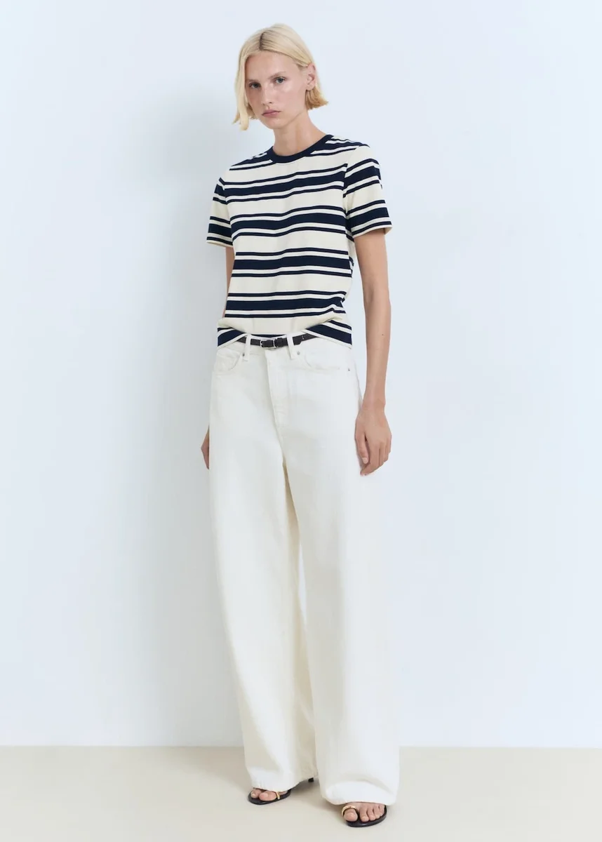 100% bawełna. Prosty krój. Kontrastowy okrągły dekolt. Krótkie rękawy. Bez zapięcia.