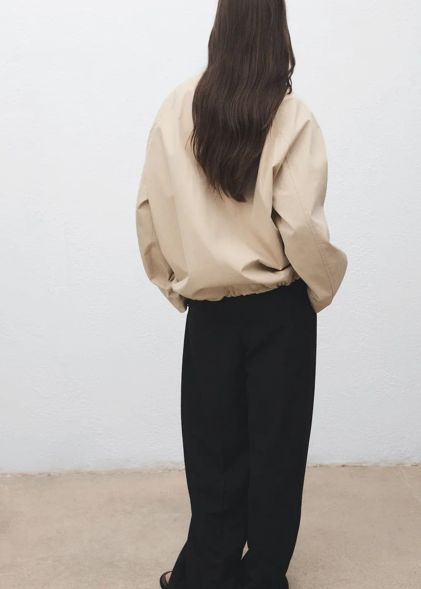 Tkanina bawełniana. Oversize’owy krój. Kołnierzyk koszulowy z sztruksu. Długi rękaw. Dół z regulowanym wewnętrznym ściągaczem. Ukryte zapięcie na zamek błyskawiczny i guziki. Podszewka wewnętrzna
