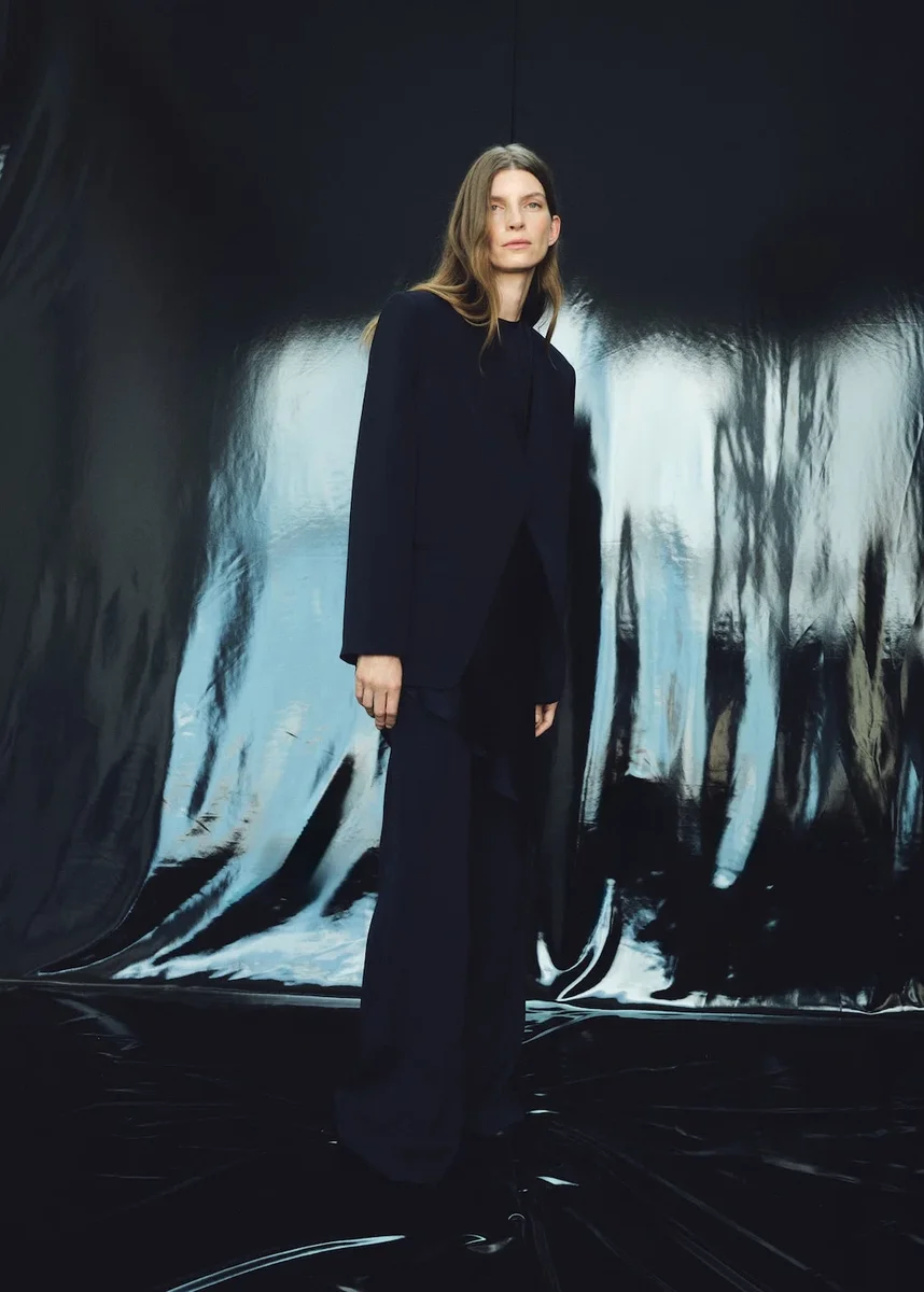 Bez klap. Rozcięcie z tyłu. Dopasowany krój. Dekolt w kształcie litery V. Długie rękawy. Kopertowy krój. Bez zapięcia. Całościowy wygląd. Ta odzież jest częścią naszej kolekcji okolicznościowej, zaprojektowanej tak, abyś była idealnym gościem na każdej imprezie, weselu lub uroczystości. Modele w kolorze czarnym i granatowym są dostępne wyłącznie w sprzedaży internetowej.