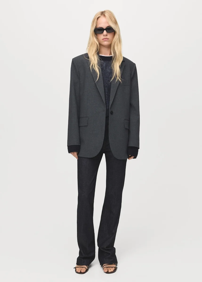 Prosty krój. Kołnierzyk z klapami w kształcie litery V. Klapy z wycięciem. Długie rękawy z mankietami zapinanymi na guziki. Kieszeń z wypustką na piersi. Dwie kieszenie z klapami z przodu. Zapięcie na guziki z przodu. Podszewka wewnętrzna. Dostępne w rozmiarach Plus. Skład: 67% poliester, 28% wiskoza, 5% elastan Podszewka: 53% poliester, 47% wiskoza Podszewka rękawów: 100% poliester