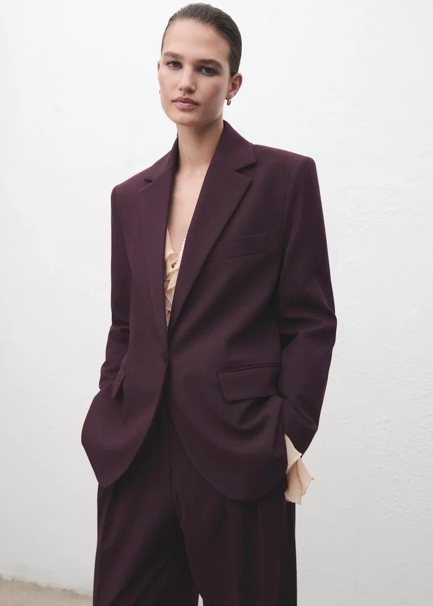 Prosty krój. Kołnierzyk z klapami w kształcie litery V. Klapy z wycięciem. Długie rękawy z mankietami zapinanymi na guziki. Kieszeń na piersi. Dwie kieszenie z klapkami z przodu. Zapięcie na guziki z przodu. Podszewka wewnętrzna. Całkowity wygląd. Dostępne w rozmiarach Plus