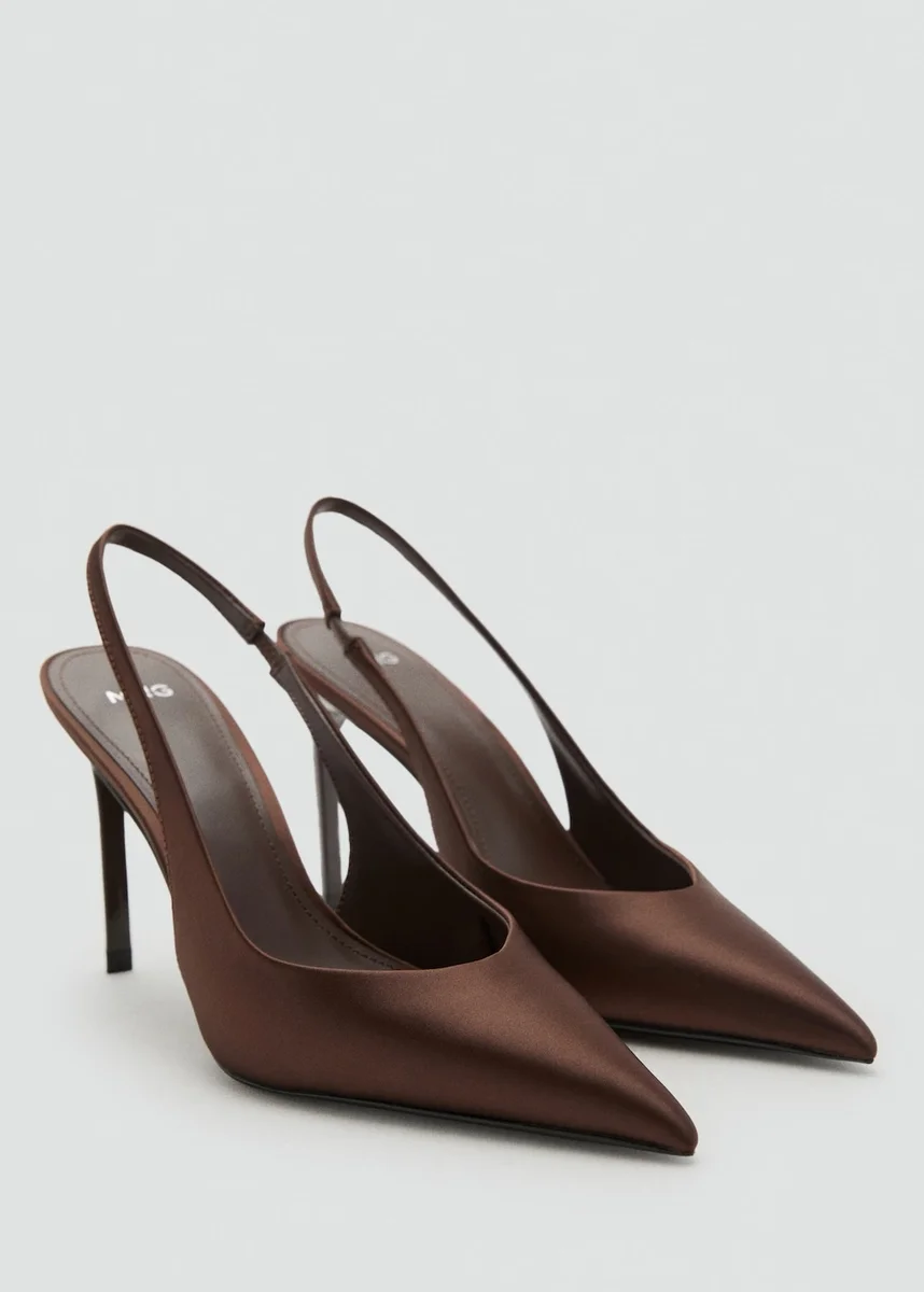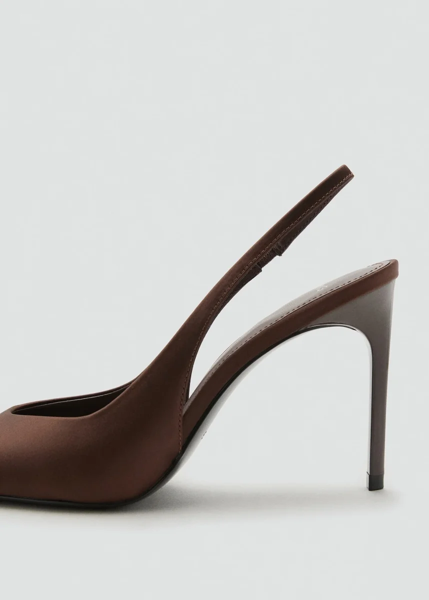 Satynowe wykończenie. Fason z paskiem. Szpiczasty. Szpilka. Bez zapięcia. Wysokość obcasa: 10 cm.