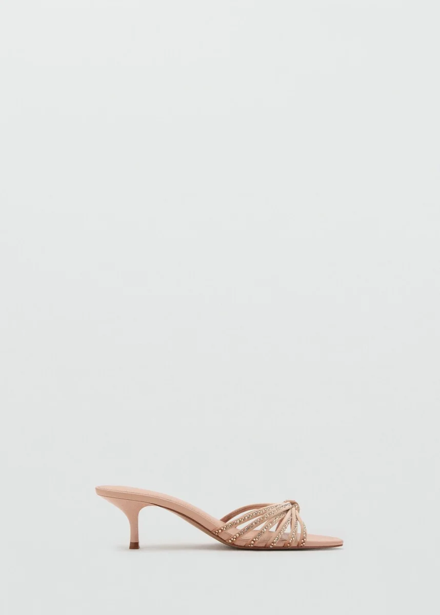 Te sandały z paskiem z tyłu oddają esencję glamour dzięki paskom ozdobionym kryształkami i odkrytym palcom. Obcas o wysokości 4,5 cm dodaje im wyrafinowania, sprawiając, że każdy krok jest wyrazem stylu