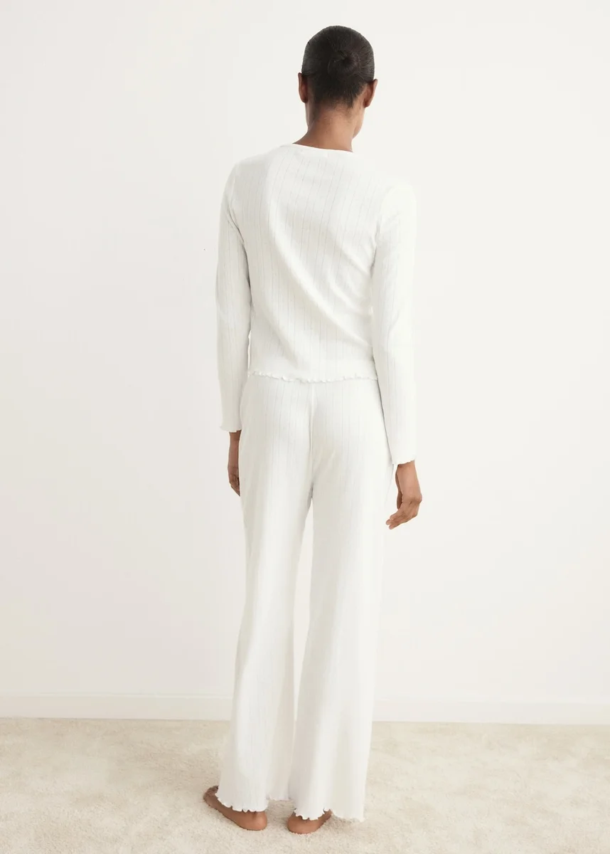 Piżama z długimi nogawkami. 100% bawełna. Długi fason. Okrągły dekolt. Prosty krój. Prześwitująca dzianina. Oddychający materiał. Zapewnia komfort i swobodę ruchów.