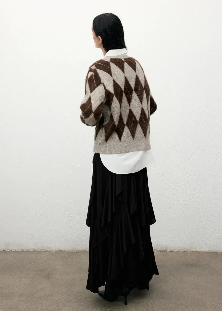 Ta długa, prosta spódnica ma marszczony krój, elastyczny pas i asymetryczny dół, który nadaje jej nowoczesny charakter. Wyłącznie w sprzedaży internetowej