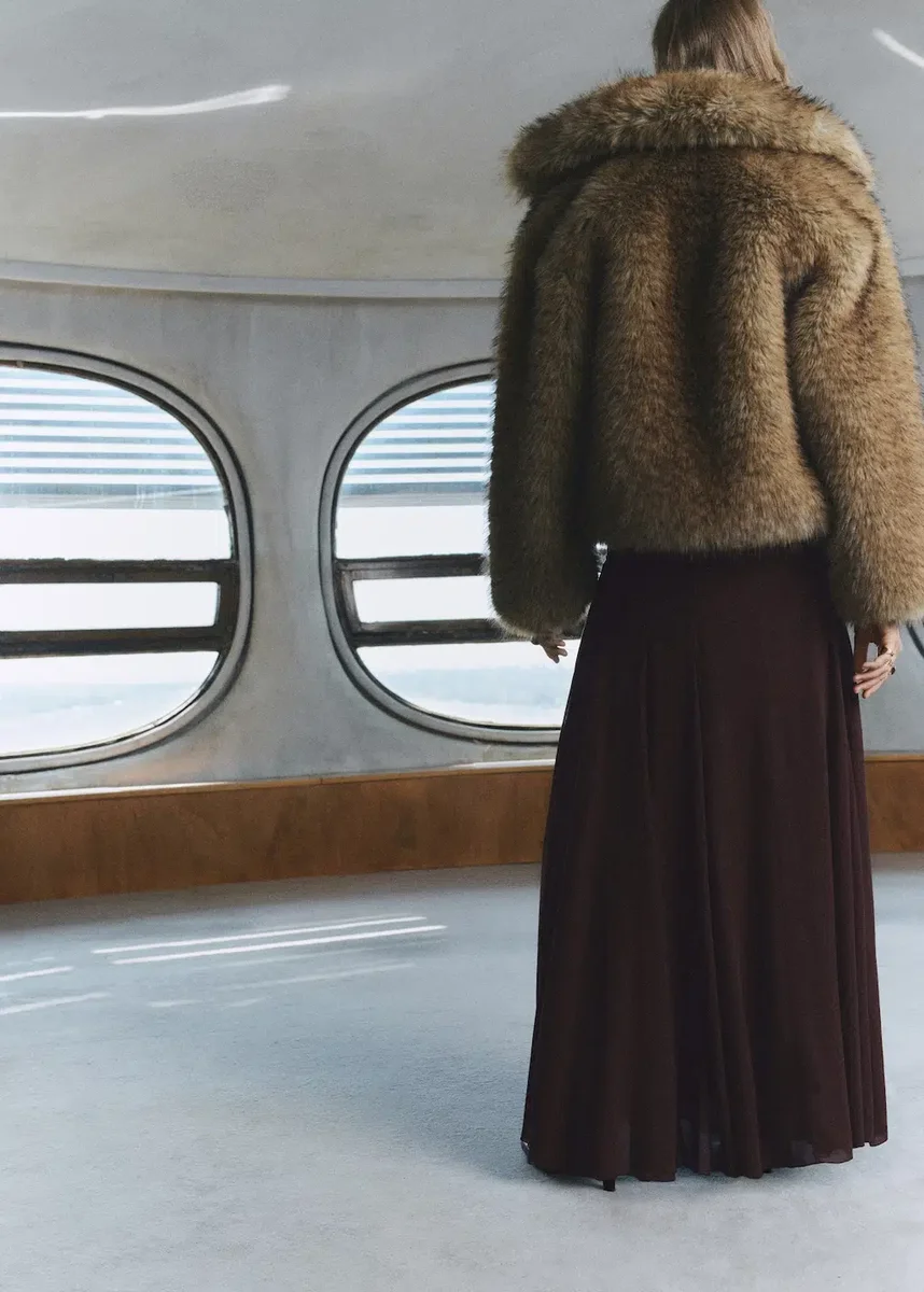 Ta długa kurtka o średniej wysokości talii posiada szlufki i pasek zapinany na klamrę. Ma wstawki w kształcie trójkątów i boczne zapięcie na zamek błyskawiczny. Posiada wewnętrzną podszewkę dla większego komfortu.