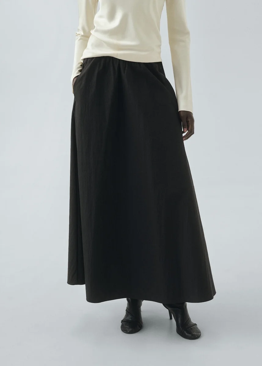 Ta spódnica wykonana z bawełnianej tkaniny ma długi krój w kształcie litery A i średni stan. Elastyczny pas zapewnia wygodę. Bez zapięcia. Kolekcja Selection. Wybór eleganckich ubrań, wykonanych z wysokiej jakości materiałów, które pozwolą stworzyć kobiecą i nowoczesną garderobę.