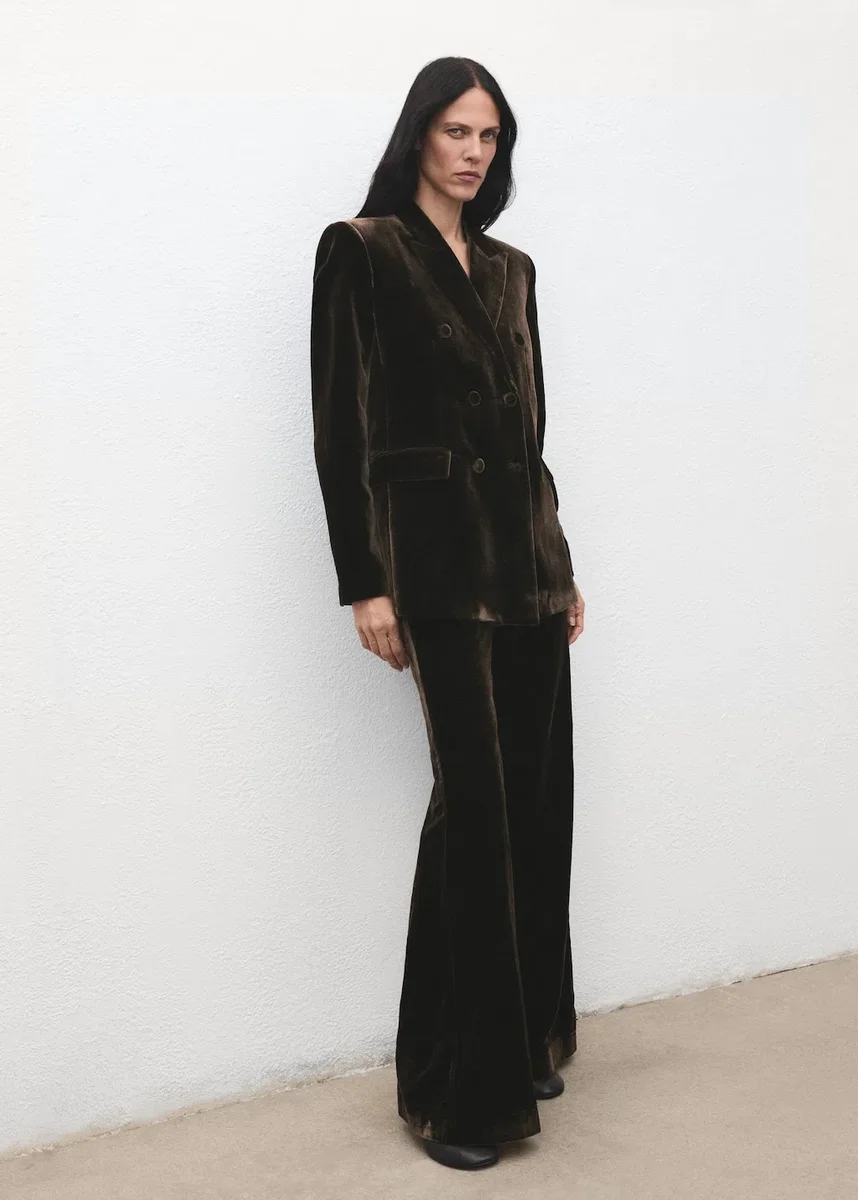 Aksamitna tkanina. Długi fason. Rozkloszowany fason. Wysoki stan. Boczne zapięcie na zamek błyskawiczny. Podszewka wewnętrzna. Całkowity wygląd. Ta odzież jest częścią naszej kolekcji imprezowej i eventowej, zaprojektowanej, aby podkreślić Twój wygląd podczas specjalnych okazji.