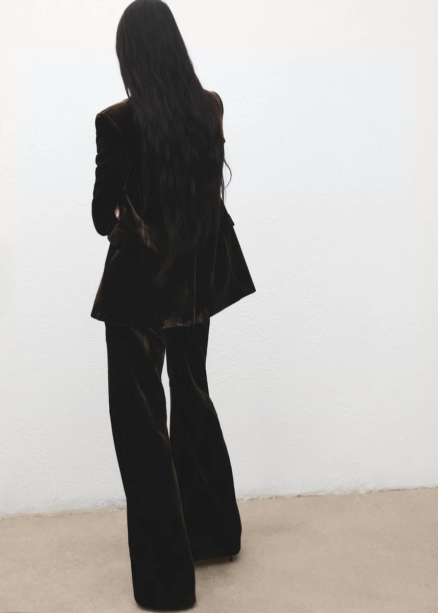 Aksamitna tkanina. Długi fason. Rozkloszowany fason. Wysoki stan. Boczne zapięcie na zamek błyskawiczny. Podszewka wewnętrzna. Całościowy wygląd. Ta odzież jest częścią naszej kolekcji imprezowej i okolicznościowej, zaprojektowanej, aby podkreślić Twój wygląd podczas specjalnych okazji.