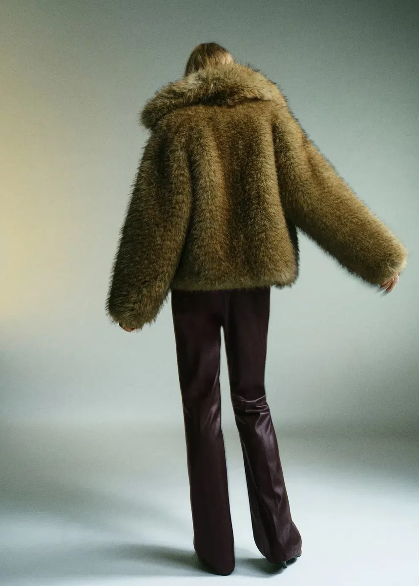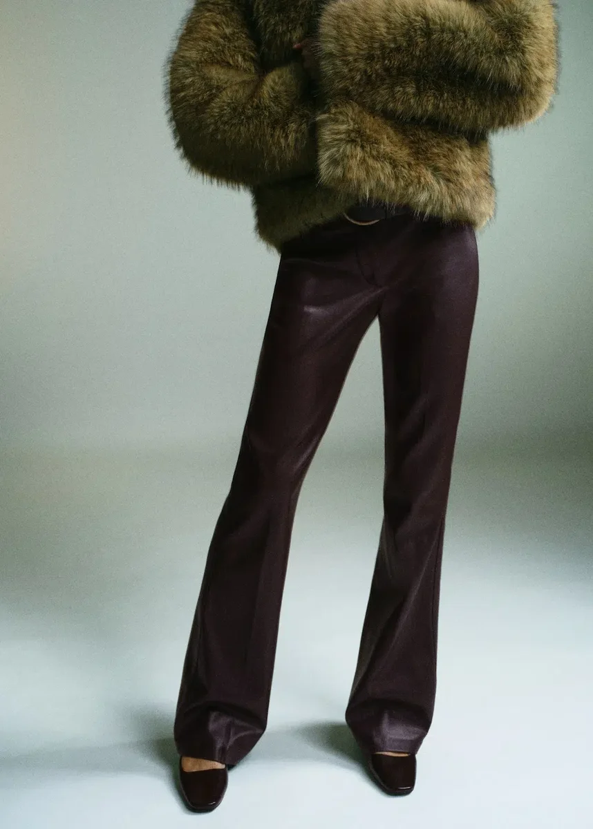 Efekt skóry. Długi fason. Dopasowany krój. Rozkloszowany fason. Niski stan. Zapięcie na haczyk i zamek błyskawiczny. Kolor zielony dostępny wyłącznie w sprzedaży internetowej.