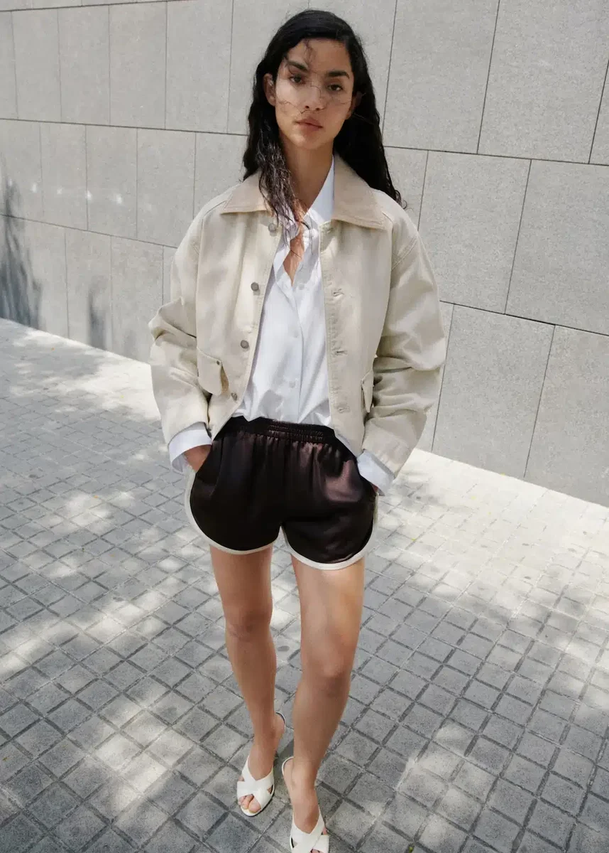 Te krótkie, proste szorty mają średni stan i elastyczny pas dla dodatkowego komfortu. Kontrastowe lamówki dodają im charakteru.