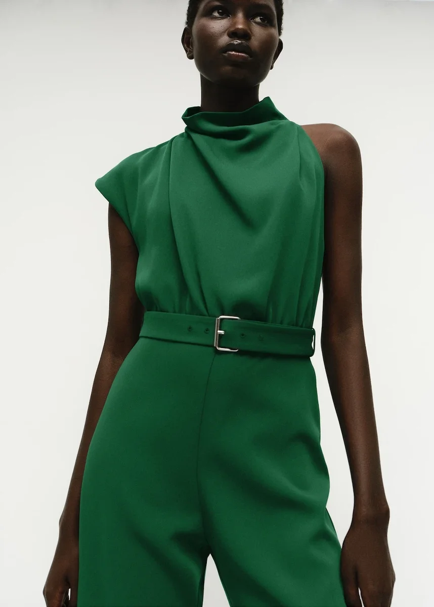 Długi fason. Prosty krój. Drapowany dekolt. Asymetryczne rękawy. Szlufki. Zapięcie na klamrę. Zapięcie na guziki przy dekolcie. Podszewka wewnętrzna. Ta odzież należy do naszej kolekcji eventowej, zaprojektowanej, abyś była idealną gościem na każdej imprezie, weselu lub uroczystości.