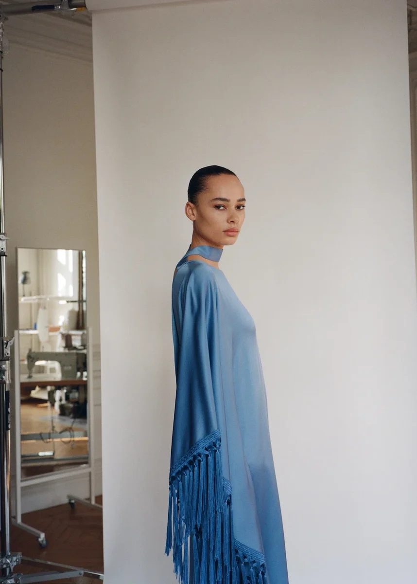 Ta satynowa sukienka to prawdziwa deklaracja stylu, łącząca asymetryczny krój z wielopozycyjnymi rozkloszowanymi rękawami, które zapewniają wszechstronność i swobodę ruchów. Kokardka przy szyi dodaje elegancji, a frędzle nadają jej wyrafinowanej dynamiki. Idealna dla tych, którzy chcą się wyróżnić odważnym i szykownym wyglądem na każdej specjalnej okazji. Satynowy splot. Krój midi. Kołnierzyk z wieloma pozycjami. Asymetryczny dekolt. Długi rękaw. Wiązanie pod szyją. Boczne zapięcie na zamek błyskawiczny. Frędzle na brzegu. Podszewka wewnętrzna. Kolekcja na imprezy i uroczystości. Produkty z kolekcji CAPSULE można wymienić lub zwrócić w ciągu 14 dni od daty wysyłki. Ta sukienka należy do naszej kolekcji na specjalne okazje, zaprojektowanej, abyś była idealną gościem na każdej imprezie, weselu lub uroczystości. Capsule: kolekcja limitowanych ubrań, wykonanych z najlepszych tkanin i z największą starannością w zakresie kroju, aby uzyskać najlepsze wykończenie. Ta ekskluzywna kolekcja została zaprojektowana z myślą o najbardziej wyjątkowych wydarzeniach i okazjach.
