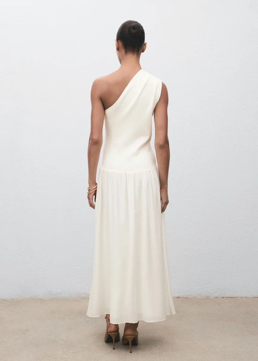 Połączenie materiałów. Długi fason. Prosty krój. Asymetryczny dekolt. Bez rękawów. Szerokie ramiączka. Bez zapięcia. Podszewka wewnętrzna. Ten produkt należy do naszej kolekcji casualowej, zaprojektowanej, aby stylowo towarzyszyć Ci w codziennym życiu.