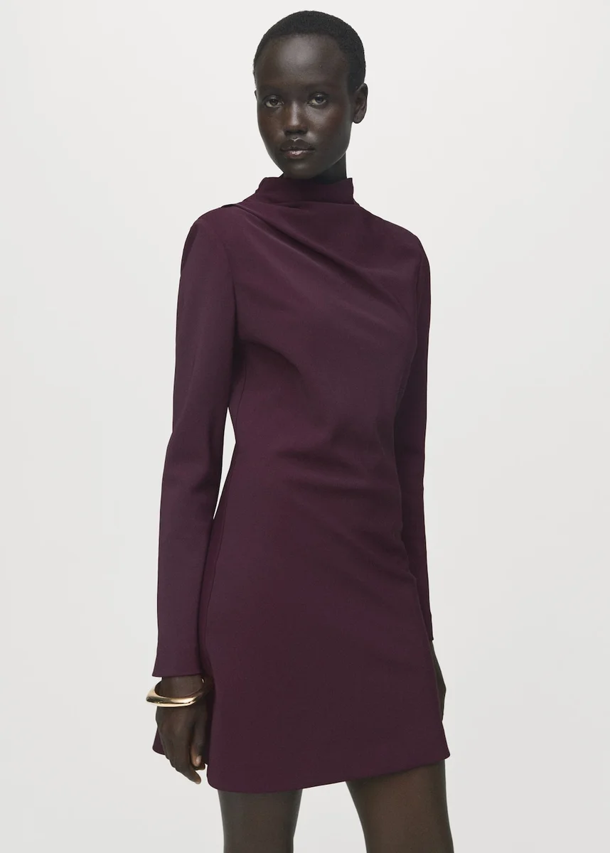 Sukienka z długimi rękawami i drapowanym dekoltem