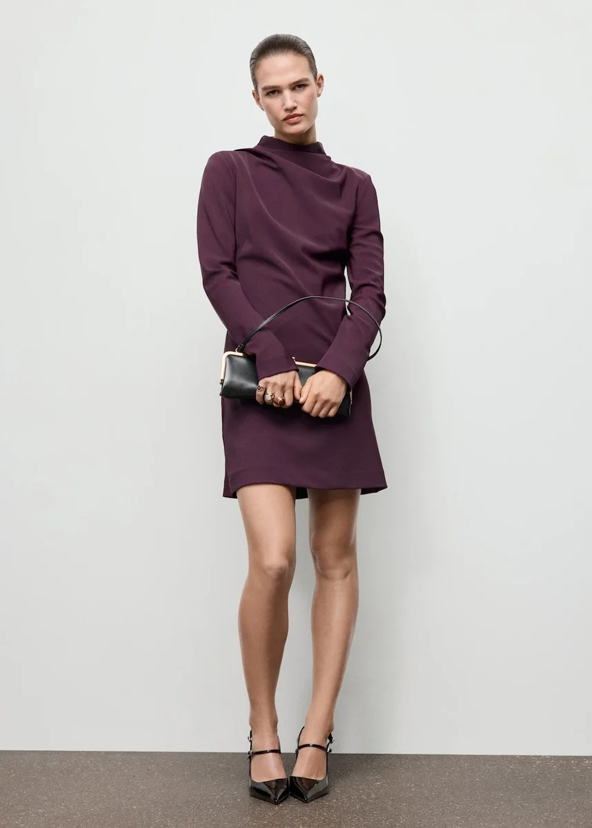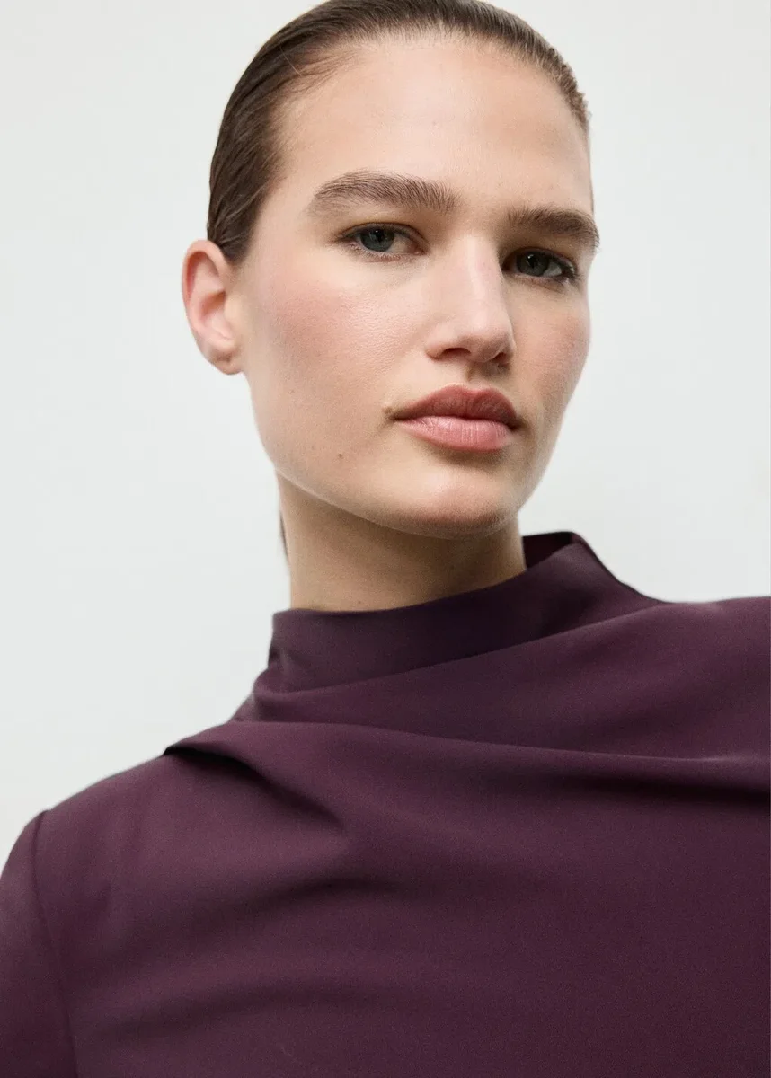 Krótki fason. Prosty krój. Drapowany dekolt. Długi rękaw. Zamek błyskawiczny z tyłu. Kolor fioletowy jest dostępny wyłącznie w sprzedaży internetowej.