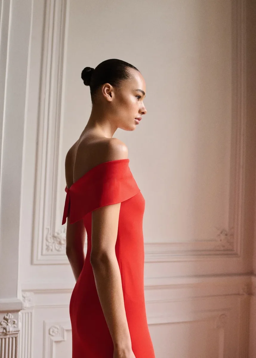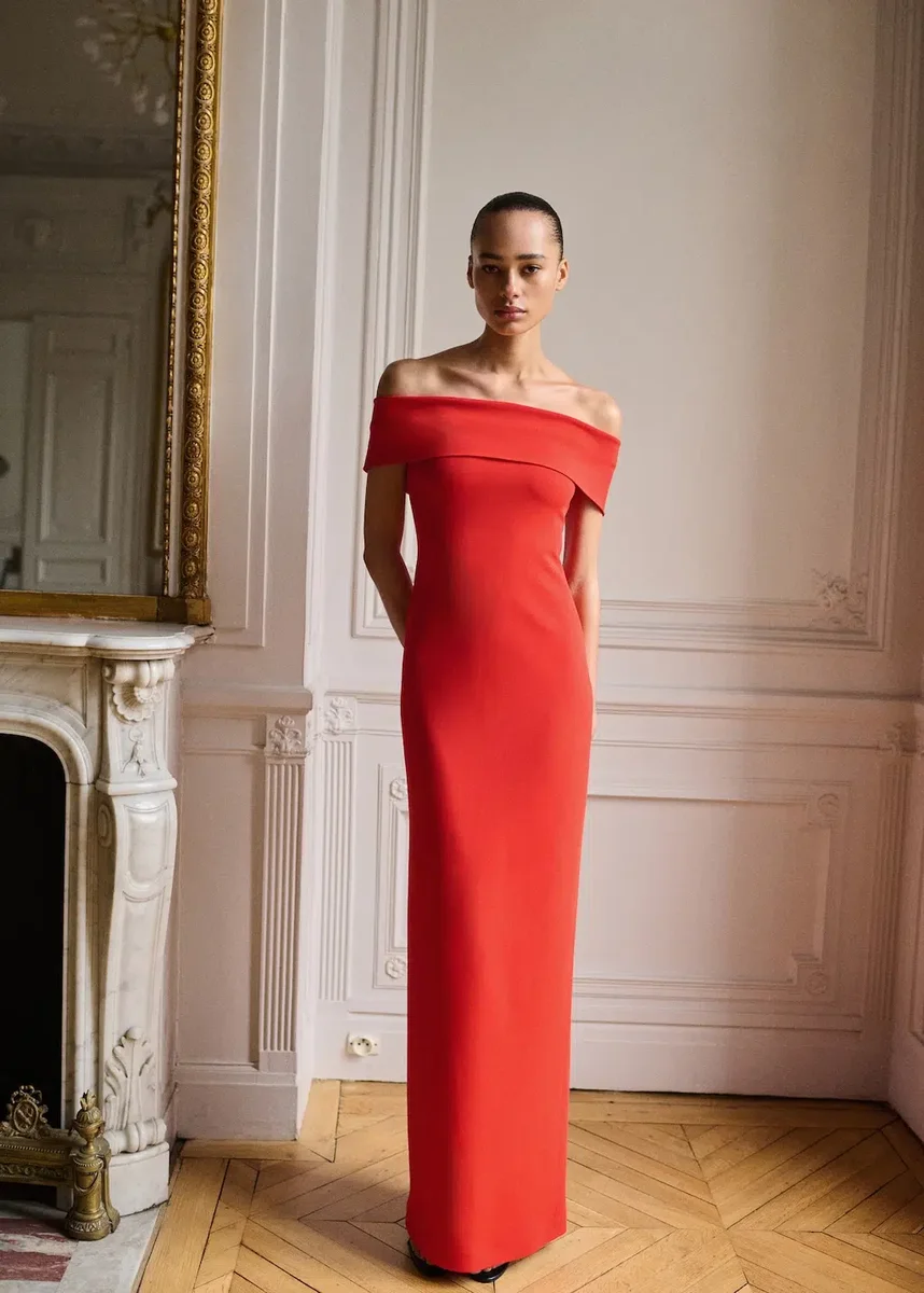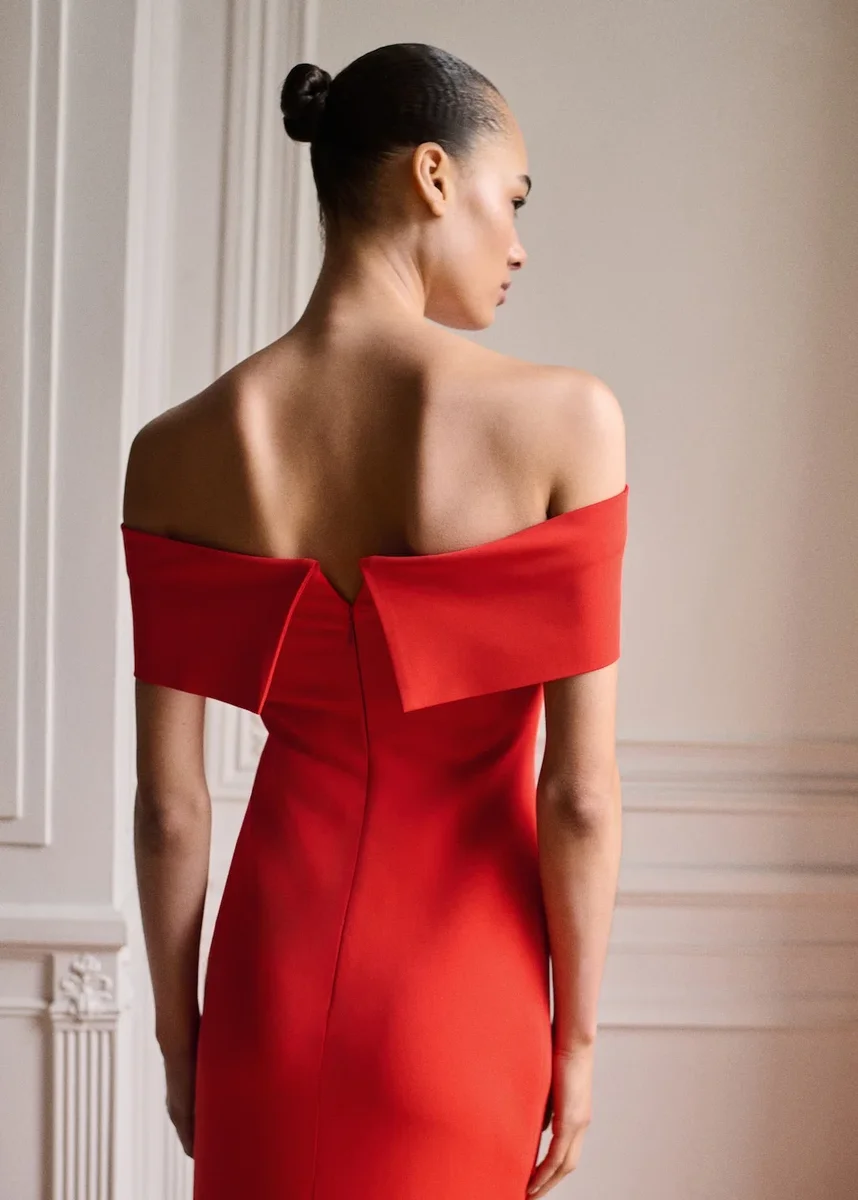 Sukienka z odkrytymi ramionami została zaprojektowana na nowo w najbardziej korzystnej i eleganckiej wersji: modny dekolt z odkrytymi ramionami i rozcięcie z tyłu sprawią, że nie pozostaniesz niezauważona. Prosty krój. Długi fason. Odkryte ramiona. Dekolt z podwiniętym kołnierzem. Odkryte ramiona. Rozcięcie z tyłu u dołu. Niewidoczny zamek błyskawiczny z tyłu. Podszewka wewnętrzna. Wyprodukowano w Portugalii. Kolekcja na imprezy i uroczystości. Kolor czerwony jest dostępny wyłącznie w sprzedaży internetowej. Ta sukienka należy do naszej kolekcji na specjalne okazje, zaprojektowanej, abyś była idealną gościem na każdym przyjęciu, weselu lub uroczystości. Produkty z kolekcji CAPSULE można wymienić lub zwrócić w ciągu 14 dni od daty wysyłki. Skład: 97% wiskoza, 3% elastan Podszewka: 100% poliester Pranie w pralce w temperaturze maks. 30°C / 85°F