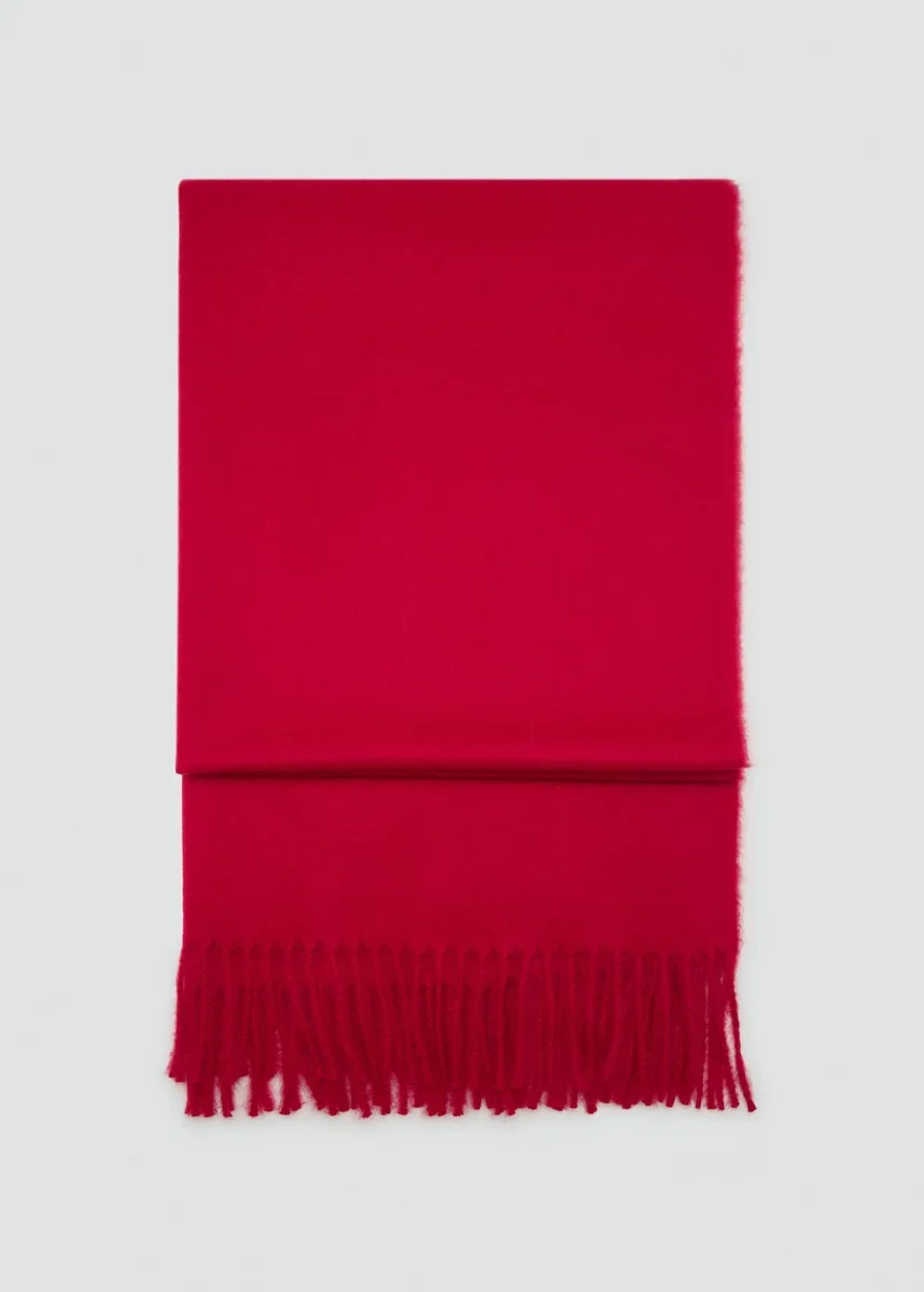 Dzianina. Prosty wzór. Wykończenie frędzlami.