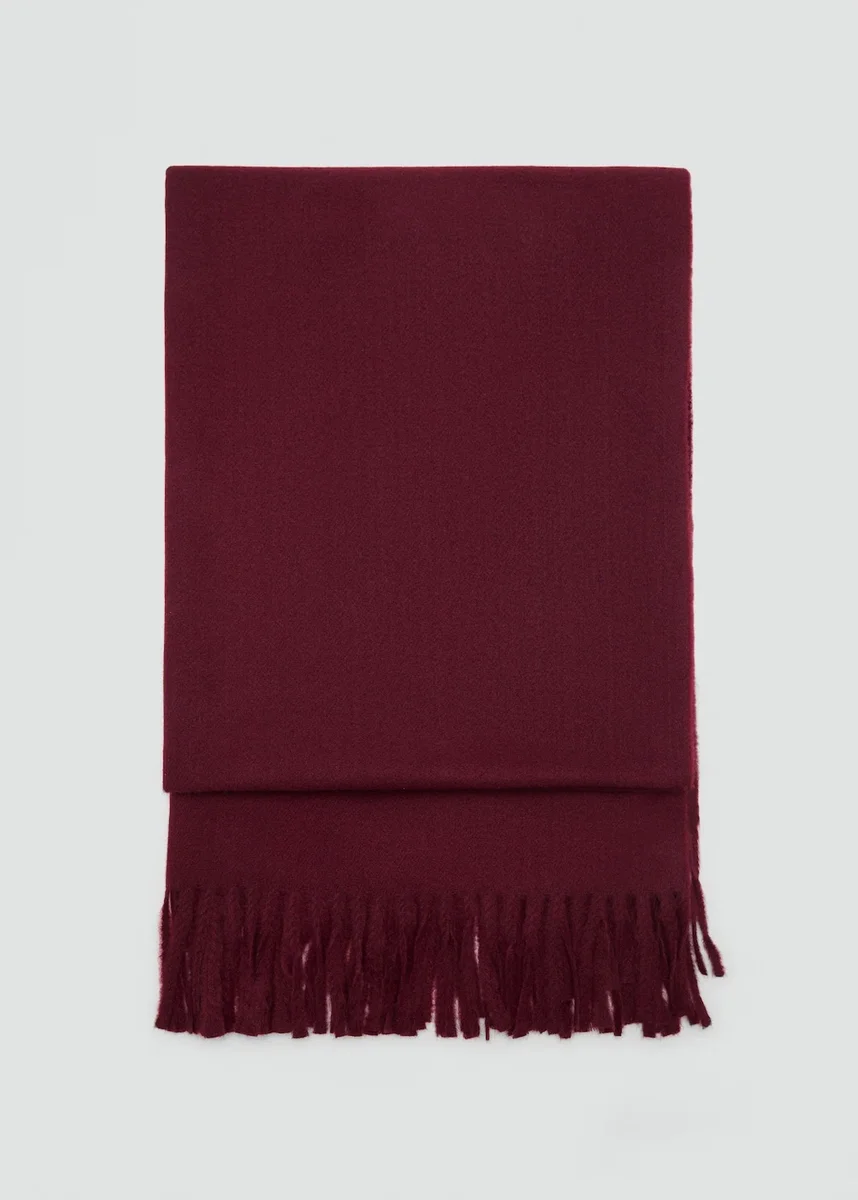 Dzianina. Prosty wzór. Wykończenie frędzlami.