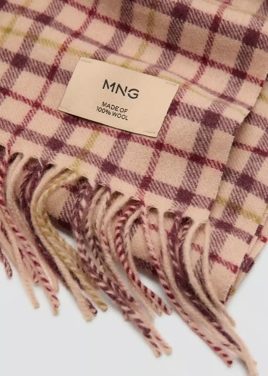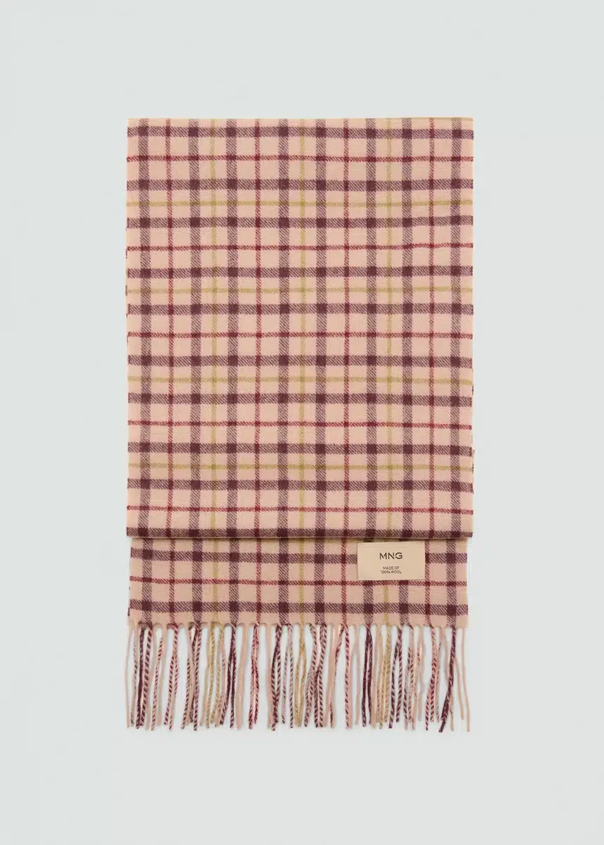 100% wełna. Kratka. Postrzępione wykończenie.