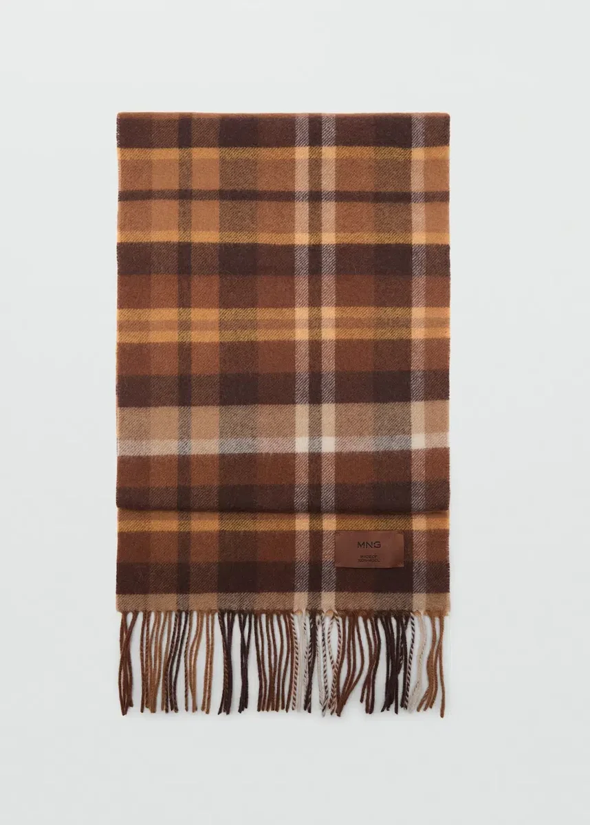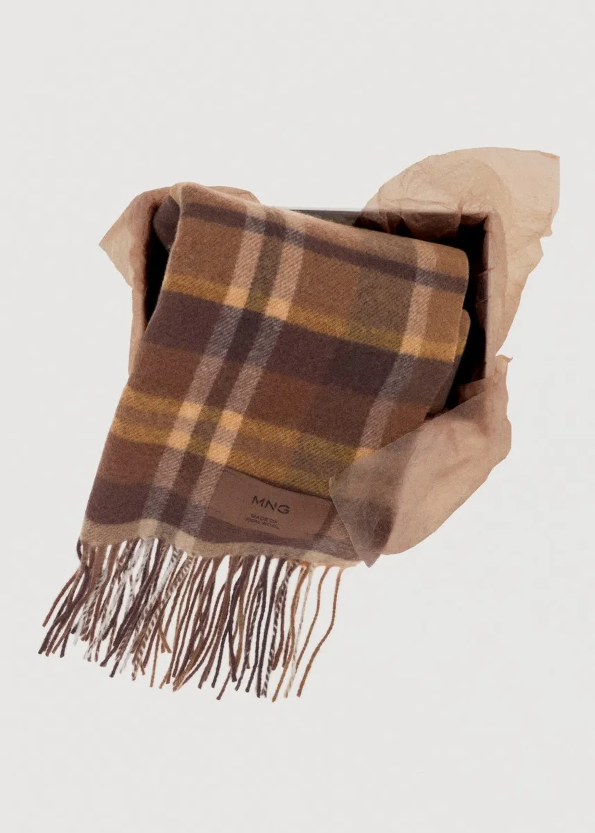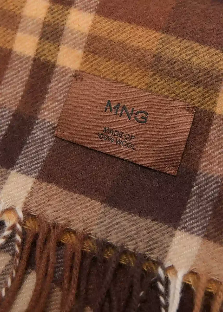 100% wełna. Kratka. Postrzępione wykończenie. 74,8 x 11,81 cala