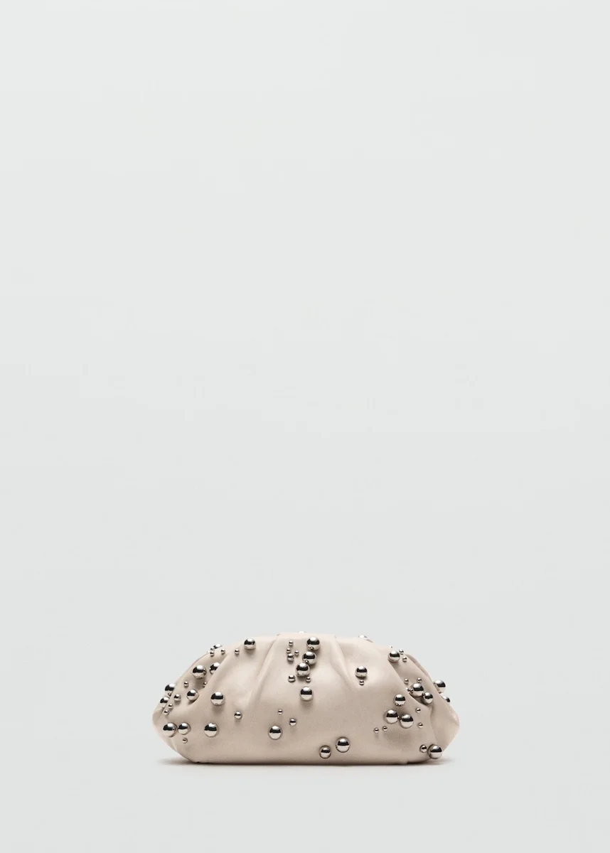 Ta torebka wyróżnia się eleganckim wzorem, ozdobionym metalicznymi kulkami, które dodają jej blasku i tekstury. Jej kompaktowa i wyrafinowana konstrukcja sprawia, że jest idealnym dodatkiem do stylowego przenoszenia niezbędnych przedmiotów. Średni rozmiar. 100% skóra koźla. Ozdobne aplikacje w postaci kulek. Wewnętrzna kieszeń.