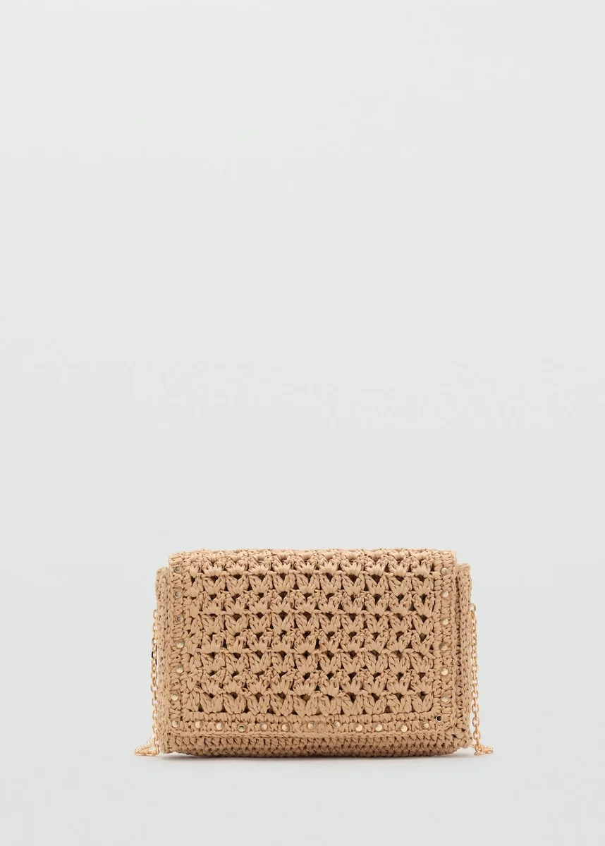 Mały rozmiar. Tkanina z naturalnego włókna. Długi odpinany pasek łańcuszkowy. Detale z ćwiekami. Kieszeń wewnętrzna. Zapięcie na klapkę z magnetycznym guzikiem. Podszewka wewnętrzna.