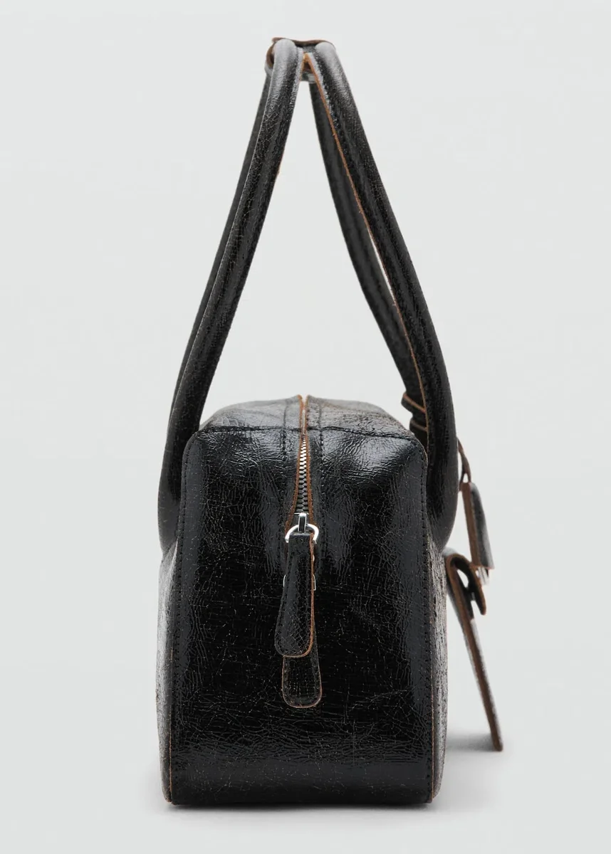 100% skóra bydlęca. Dwa paski na ramię. Ozdobne zawieszki. Wewnętrzna kieszeń. Zapięcie na zamek błyskawiczny. Podszewka 100% bawełna.