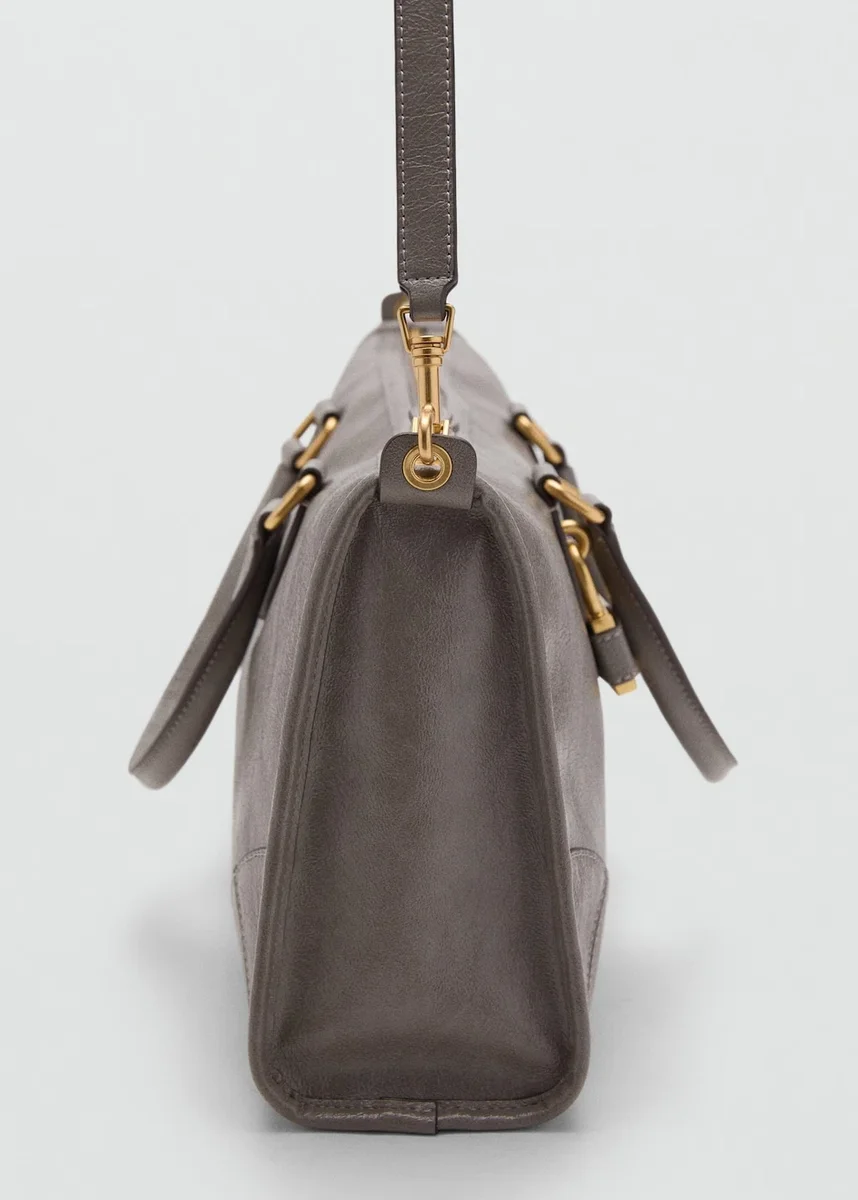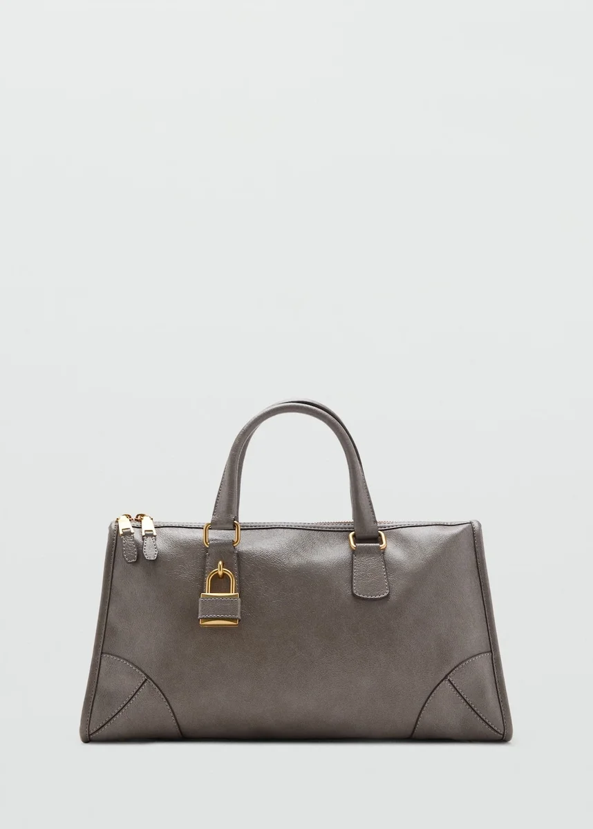 Efekt skóry. Błyszczące wykończenie. Prostokątny krój. Dwa krótkie uchwyty. Odpinany długi pasek na ramię. Zapięcie na zamek błyskawiczny. Detal w postaci kłódki. Wewnętrzna podszewka.