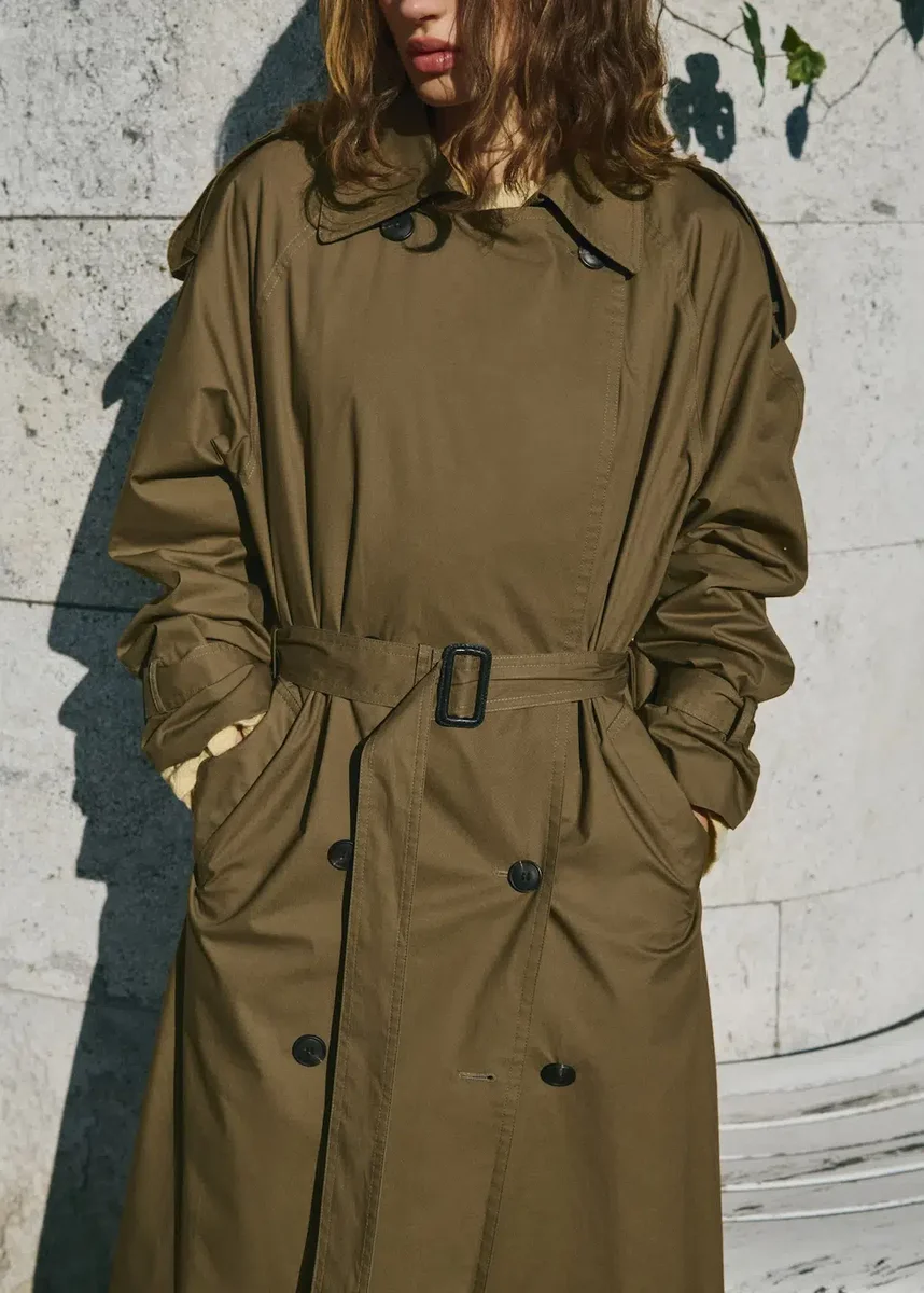 Wykonany w 100% z bawełny, ten długi i oversize’owy model ma odpinany kołnierzyk z sztruksu. Posiada długie rękawy z regulowanymi mankietami, epolety na ramionach i mankietach, pasek z klamrą, zapięcie dwurzędowe i podszewkę wewnętrzną. Skład: 100% bawełna. Podszewka: 80% poliester, 20% bawełna. Wyjmowana podszewka: 100% poliester