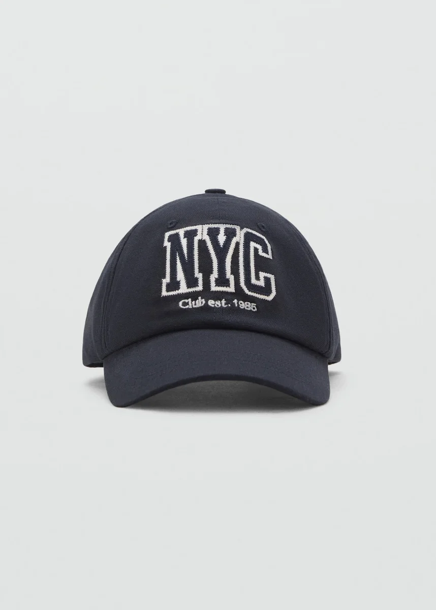 Czapka. Haftowana litera z przodu. Regulowane zapięcie.