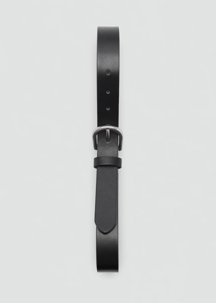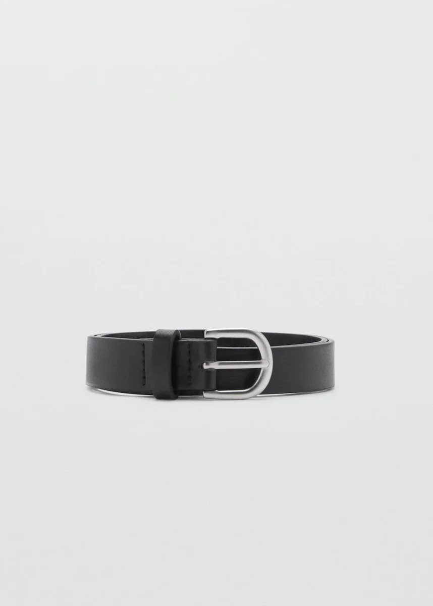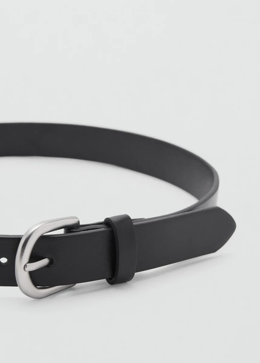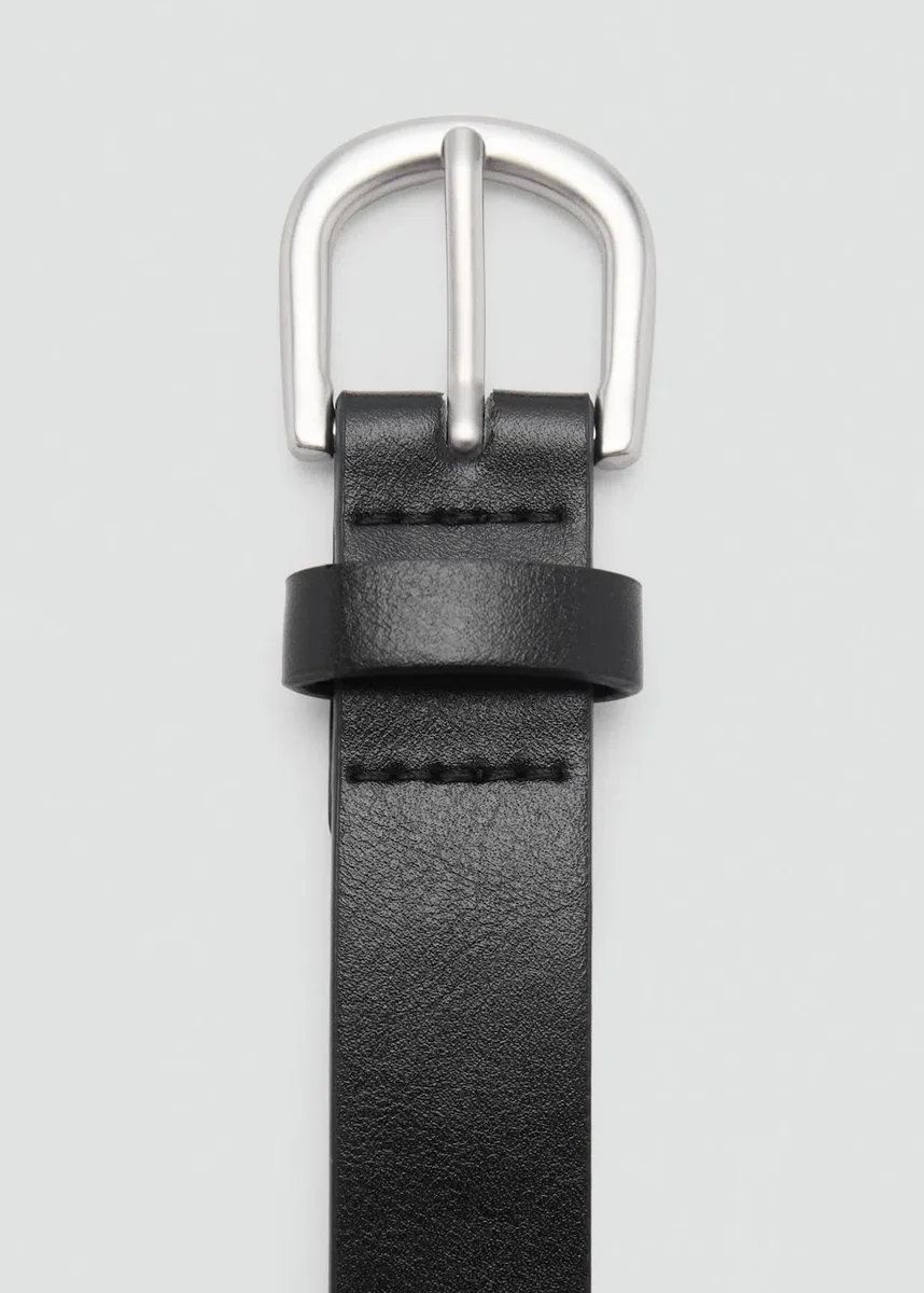 Efekt skóry. Prosty design. Pojedyncza pętelka. Zapięcie na klamrę. Metalowa klamra. Perforacja umożliwiająca swobodną regulację rozmiaru w sklepach MANGO