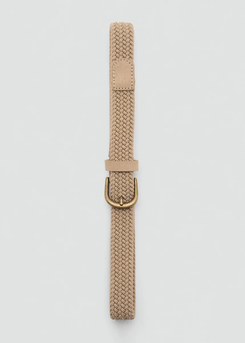 Elastyczny materiał. Pleciony wzór. Zapięcie na klamrę. Pojedyncza pętla. Metalowa klamra. Perforacja umożliwiająca swobodną regulację rozmiaru w sklepach MANGO.