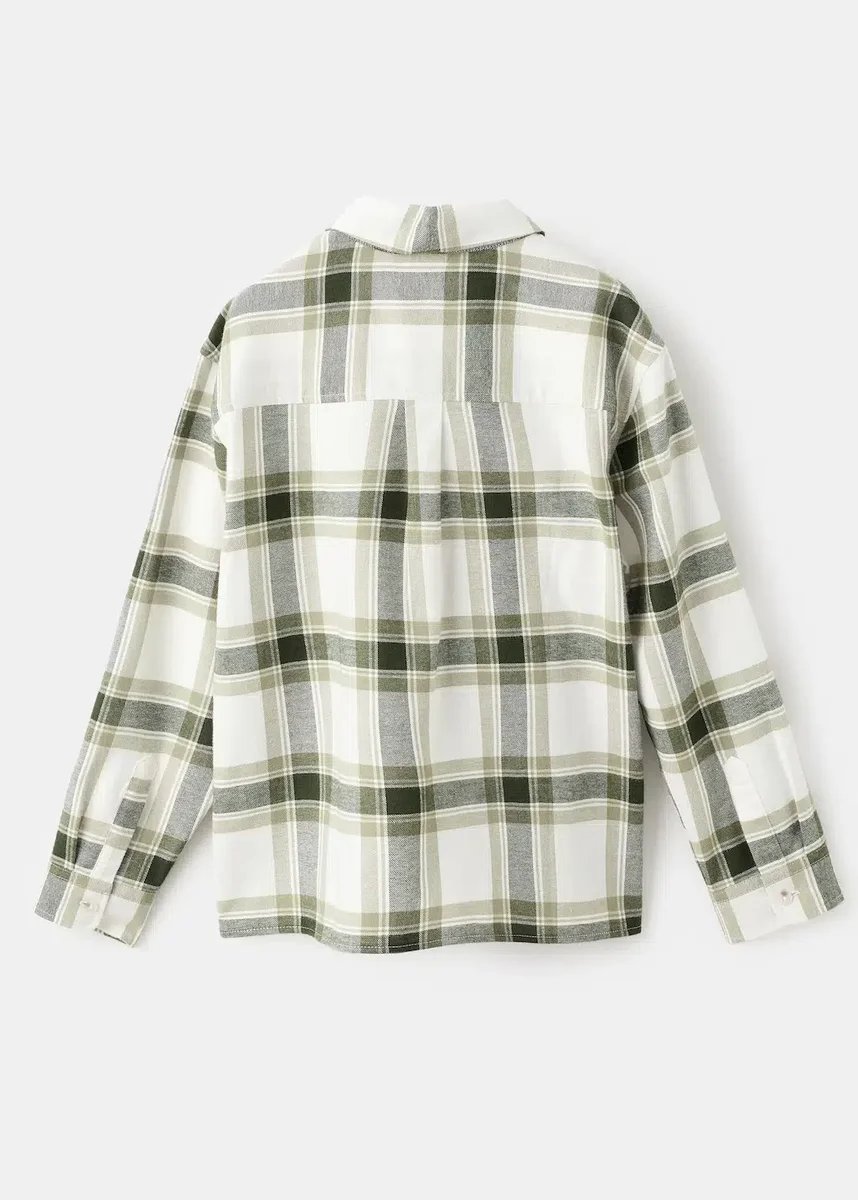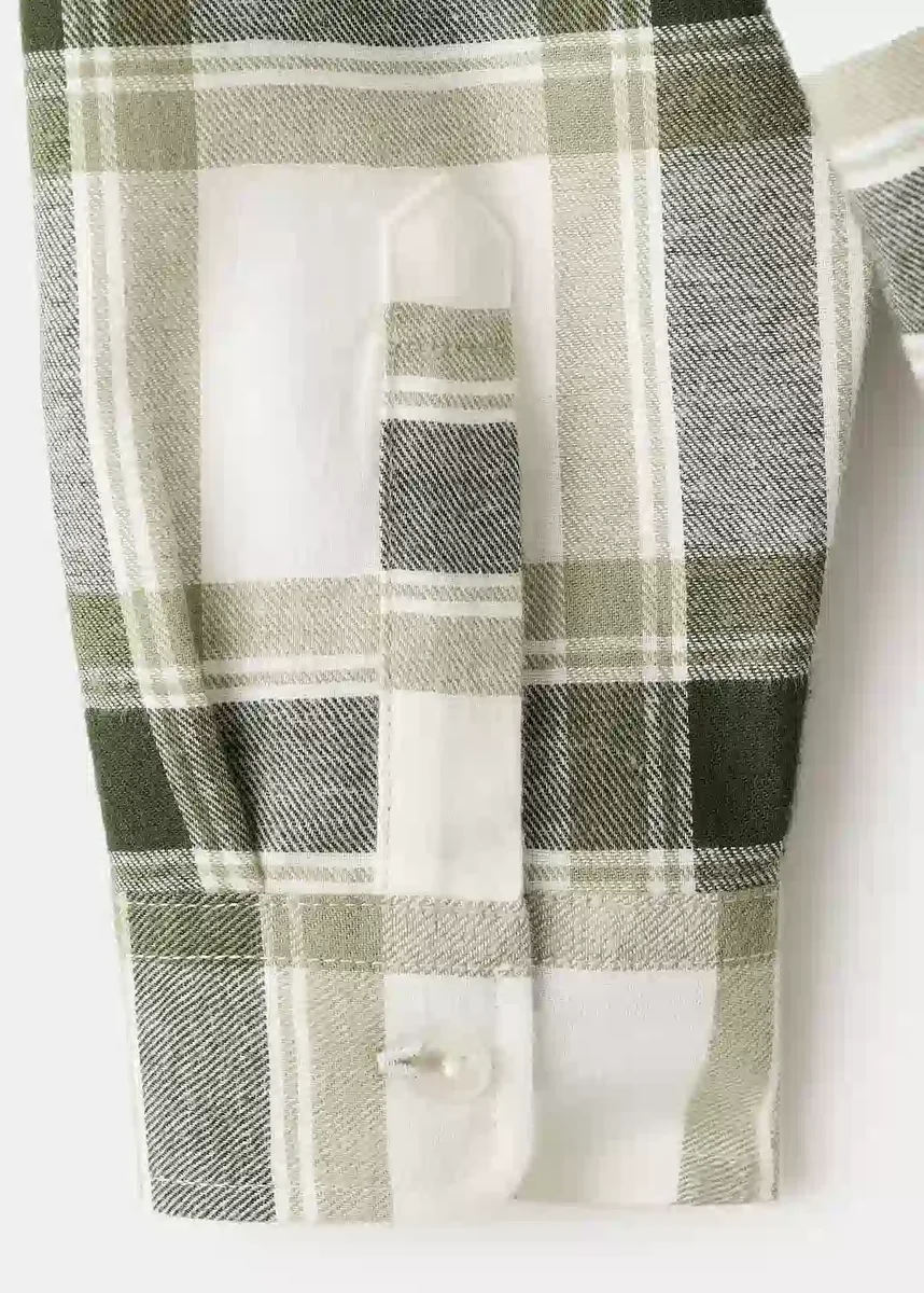 100% bawełna. Prosty krój. Kratka. Kołnierzyk koszulowy. Zapięcie na guziki z przodu. Długie rękawy z mankietami zapinanymi na guziki.